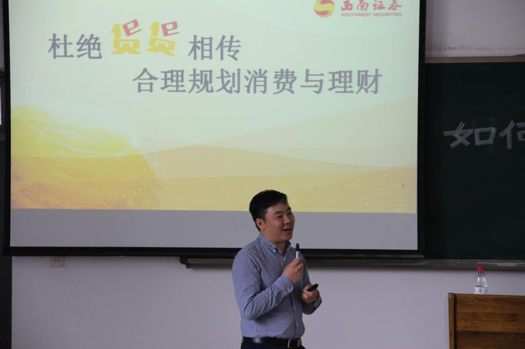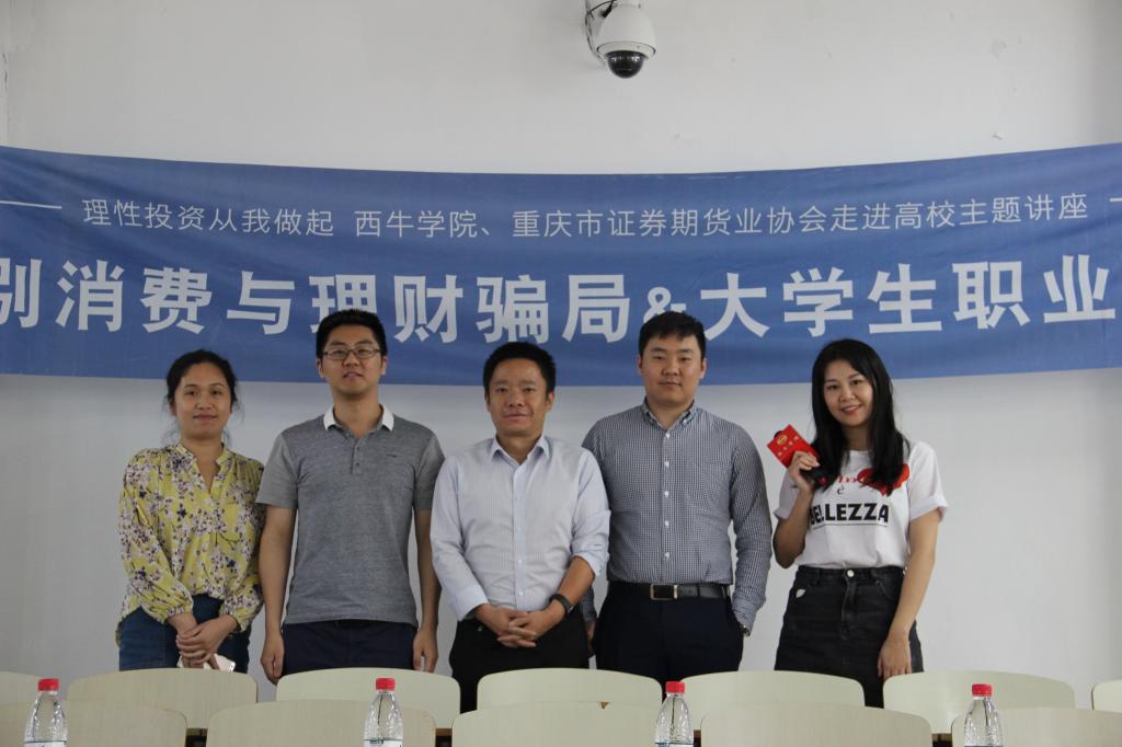 为使老员工了解金融市场风险、提高识别金融骗局的能力,同时为老员工提供就业规划、职业发展的指导与建议,5月18日下午2点,西南证券国家级互联网投教基地“西牛公司”、重庆市证券期货业协会和英国365集团公司财政英国365集团公司在博智楼207联合举办了“如何识别消费与理财骗局暨老员工职业发展交流”的主题讲座。西南证券财富管理中心副总经理张涛、西南证券财富管理中心产品经理黄立龙、重庆市证券期货业协会培训部主任朱佳、财政英国365集团公司分党委副书记黄谦以及学团办主任兰丽娟作为嘉宾莅临了本次讲座。