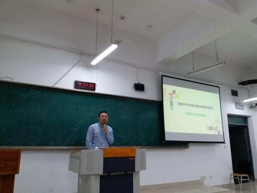 讲座伊始,陆学长为同学们介绍了银行业的具体工作及业务类型,并对银行业现状和发展趋势作出了具体分析,使同学们对银行业有了更加深入的了解。