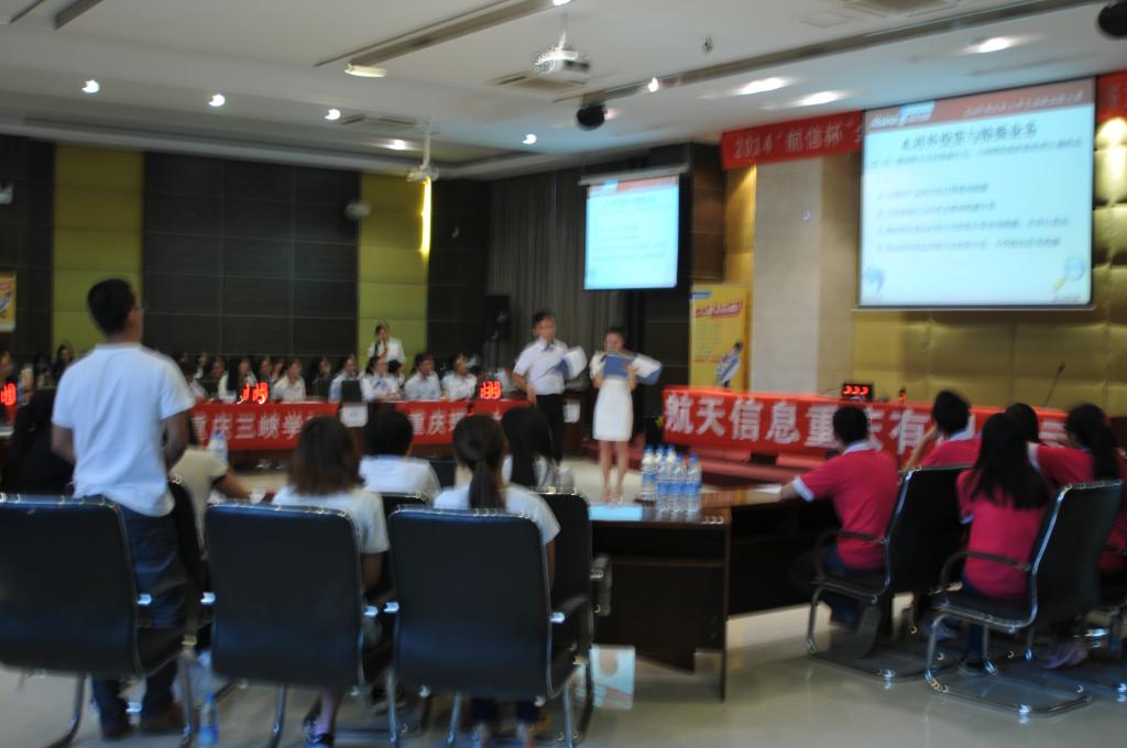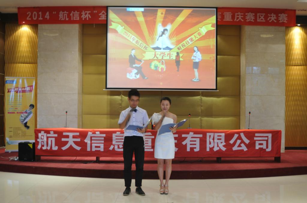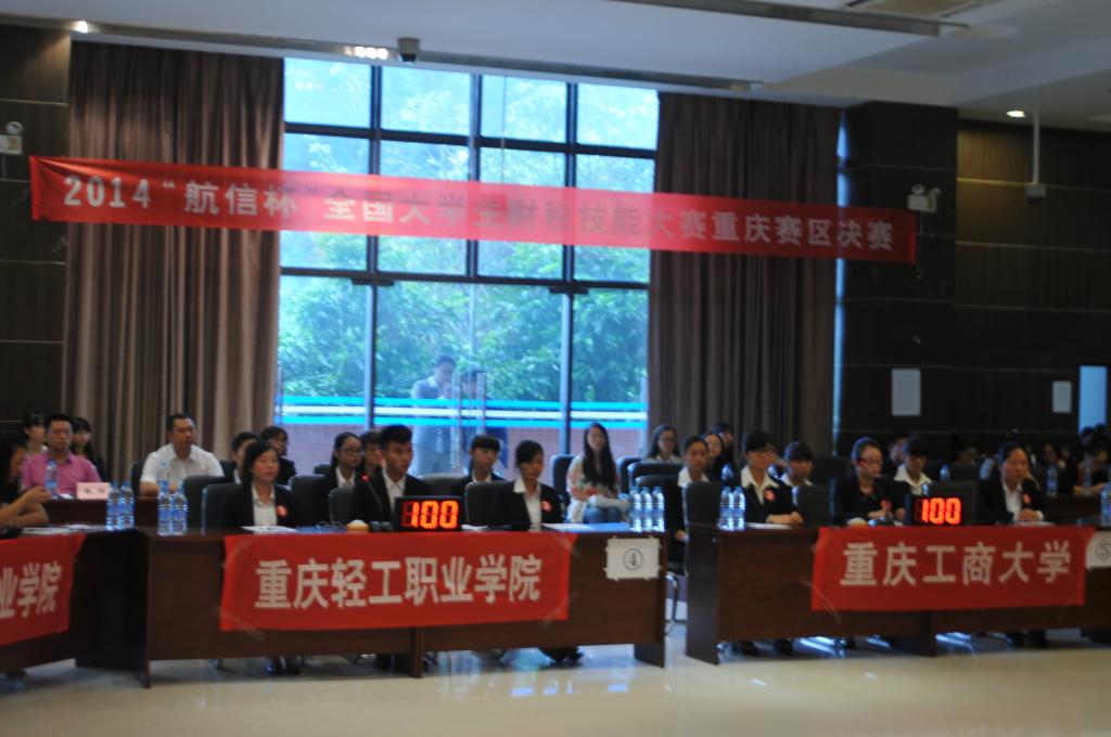 ,由公司承办的2014年“航信杯”全国老员工财税技能大赛重庆赛区决赛在田家炳408会议室举行,来自重庆市八所高校的参赛队伍相聚于此,上演了一场智慧与技能的巅峰对决。公司常务副经理莫云,党总支副书记刘代成,航天信息股份有限公司技服中心经理杨克辉、齐宏、张渝,航天信息重庆公司杨忠部长,重庆大学原审计处廖忠友老师作为本次比赛的评委、嘉宾莅临现场。