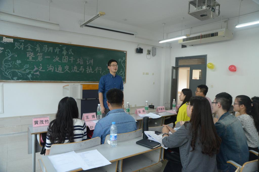 为了提高员工干部队伍的整体协作力与执行力,10月15日中午,财金青马月系列活动之“双UP”团干培训计划第一期“沟通交流与执行”于07312教室举行。财金公司党总支副书记刘代成,分团委书记徐阔莅临现场,与全体员工会干部及13、14、15级的班团代表展开面对面的沟通与交流。