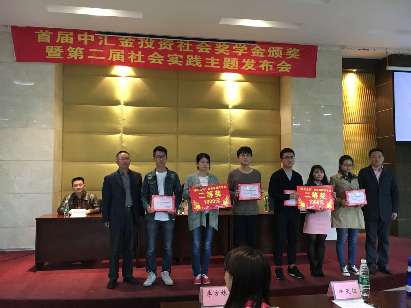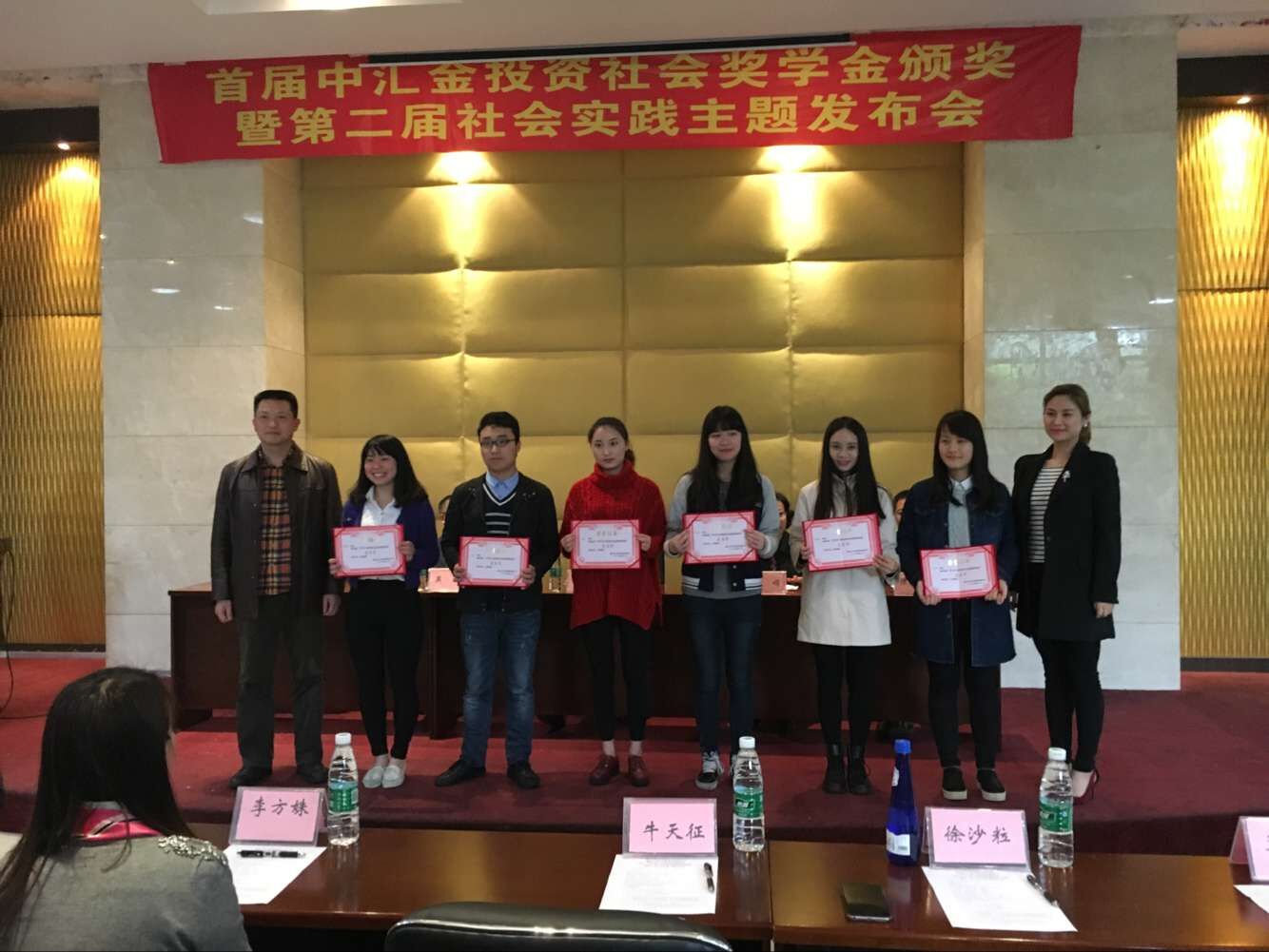 2016年4月8日,英国365集团公司财政英国365集团公司与重庆中汇金投资管理有限公司,共同举办的首届“中汇金”杯社会实践奖学金颁奖仪式暨第二届社会实践主题发布会,在英国365集团公司田家炳书院408报告厅顺利举行。英国365集团公司财政金融公司党总支书记杨萍、常务副经理莫云、党总支副书记刘代成,重庆中汇金投资管理有限公司副总经理刘娟女士、中汇金旗下重庆易八投资服务有限公司(投资无忧)总经理陈立功先生,以及200多名师生共同参加了本次活动。