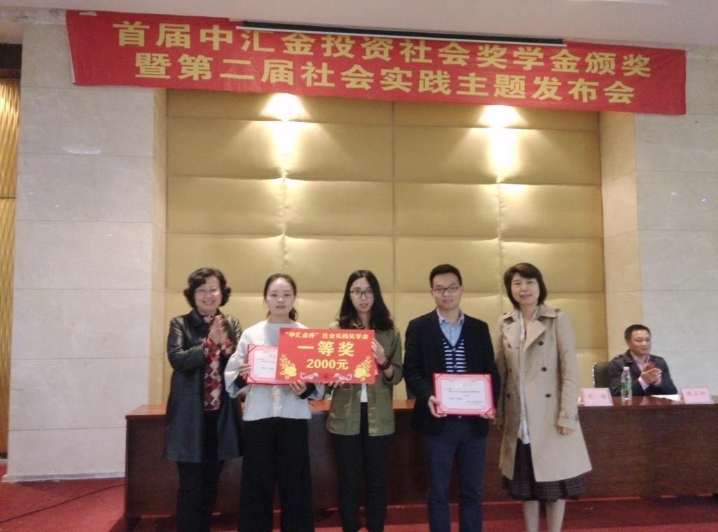 为培养行业后备人才,促进高校将竞赛与团队建设及员工学业和就业需求挂钩,进一步深化校企合作,达到以赛促教,以赛促学的目的。财金公司与中汇金于2015年启动了首届“中汇金”杯老员工社会实践调研活动。参与此次社会实践活动的员工,在中汇金公司专业人士的带领和财金公司专业老师的指导下不断提高自己的社会实践能力和专业技能。财金公司刘书记在致辞中对重庆中汇金投资管理有限公司关心公司员工发展表示感谢,并希望双方能继续加深合作,中汇金投资管理有限公司刘总则肯定了财金学子在社会实践活动中的优异表现。随后,双方为获得一等奖、二等奖和优秀奖的员工颁发荣誉证书和奖学。