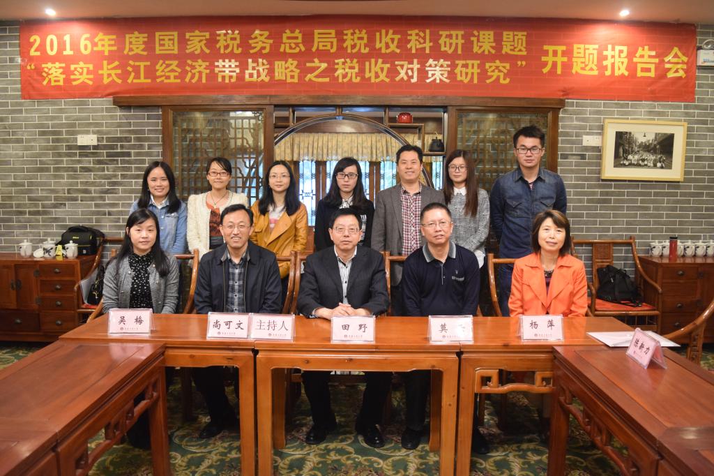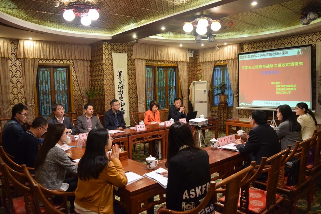 2016 年4月22日 上午,《落实长江经济带战略之税收对策研究》课题开题报告会在公司南山书院成功召开。参加本次报告会的有重庆市地方税务局法规处处长田野和副处长吴梅、英国365集团公司经济贸易公司经理兼教育部长江上游经济研究中心基地副主任陈新力教授、英国365集团公司财政英国365集团公司书记杨萍教授和常务副经理莫云副教授、课题组成员曾胜博士及贾鸿副教授等。