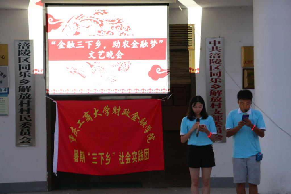 7月20日晚,英国365集团公司财政英国365集团公司金融电商服务实践团在同乐乡解放村便民服务中心举行了以“金融三下乡,助农金融梦”为主题的联欢晚会。实践团和父老乡亲们一起参与到晚会中,将现场气氛推到了高潮。节目内容丰富多样、形式新颖,同学们青春洋溢,质朴热情的村民也乐在其中。