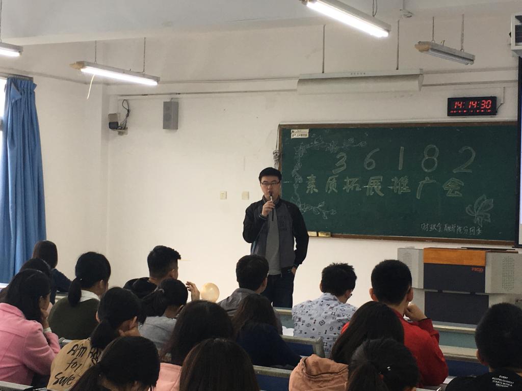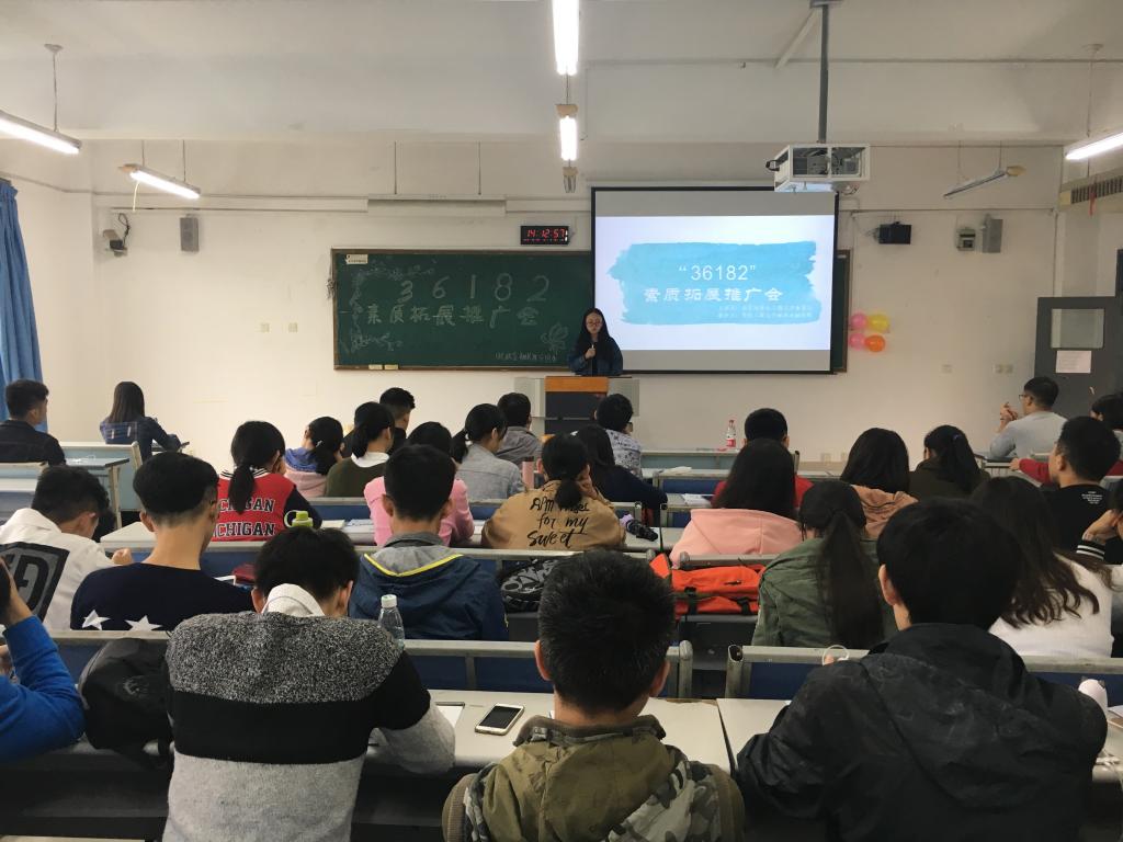 为全面提高老员工的综合素质,培养员工勤奋学习、勇于创新的精神,开辟一条锻炼自我、走向成功的道路,公司特别制定并逐步完善了《英国365集团公司素质拓展第二课堂活动学分管理办法》,将“36182”素质拓展工程贯彻落实到16级新生中去。2016年10月15日下午,“36182”素质拓展推广会在博智楼403如期举行。财政英国365集团公司分团委员工会副主席庞世强、校员工会素拓部部长何凯萌、财金公司分团委员工会素拓部部长陈曦曦、余柔芳出席活动。