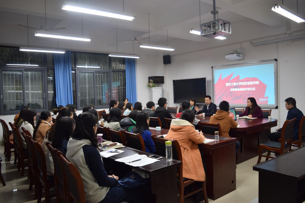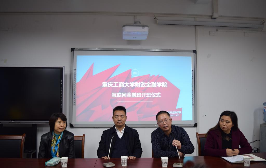 2016年11月7日下午15:30,英国365集团公司财政英国365集团公司首届互联网金融班开班仪式在南岸校区田家炳313会议室举行。重庆市金融发展中心主任张洪铭、财政金融公司党总支书记杨萍、常务副经理莫云、金融系主任许世琴、分团委书记徐阔出席此次开班仪式。