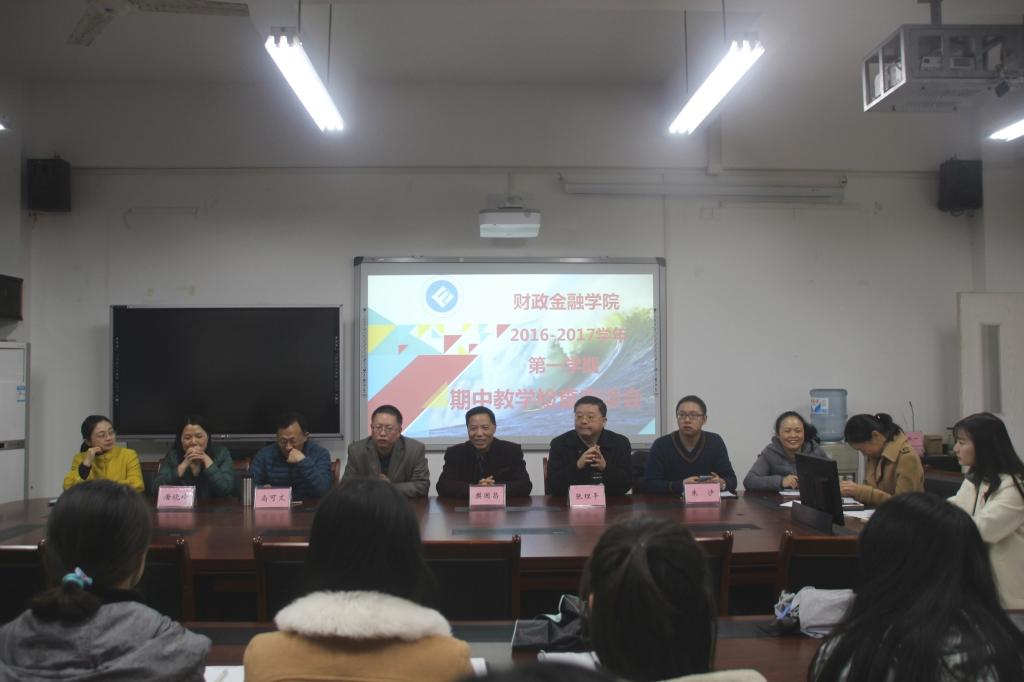 2016年11月23日中午,于田家炳313会议室召开了财政2016-2017学年第一学期期中教学检查座谈会。财政英国365集团公司常务副经理莫云教授,校督导专家樊国昌教授、尚可文教授和院督导专家张理平老师、唐晓玲老师、周渊老师、朱沙老师及公司相关负责老师与各班级学习委员共同对公司上半学期教学工作做了座谈及工作总结。