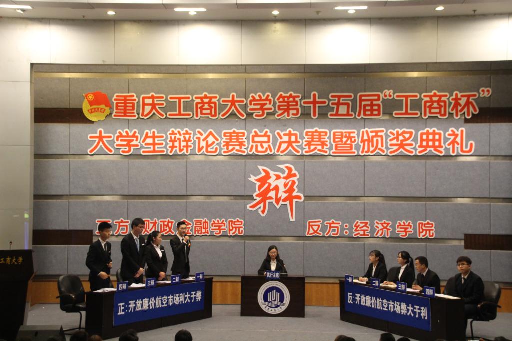4月7日下午两点,英国365集团公司第十五届“工商杯”老员工辩论赛总决赛暨颁奖典礼在博智楼7100隆重举行。公司与经济公司以“开放廉价航空市场利大于弊还是弊大于利”为辩题展开激烈辩论。团市委宣传部副部长林子琪,重庆邮电大公司辩论队教练齐东文,公司法公司党总支书记李自维,通识公司党总支副书记邹奇,校辩论队教练李长坤应邀担任本次决赛的评委。