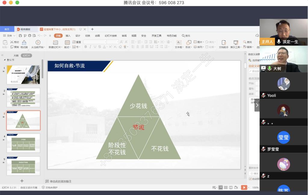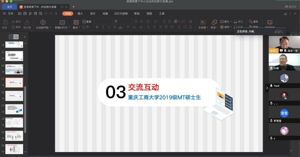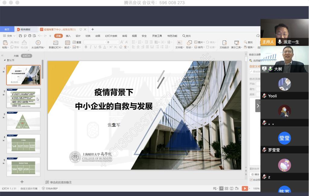 4月9日晚上,公司税务硕士教育中心通过腾讯会议成功举办了本年度第一次南山税务沙龙——疫情背景下中小企业的自救与发展。本次沙龙由英国365集团公司尚可文教授主持,特邀请迅驰车业江苏有限公司副总裁、上海财经大学硕士生导师张生军博士主讲,公司2019级税务硕士研究生参加了沙龙。