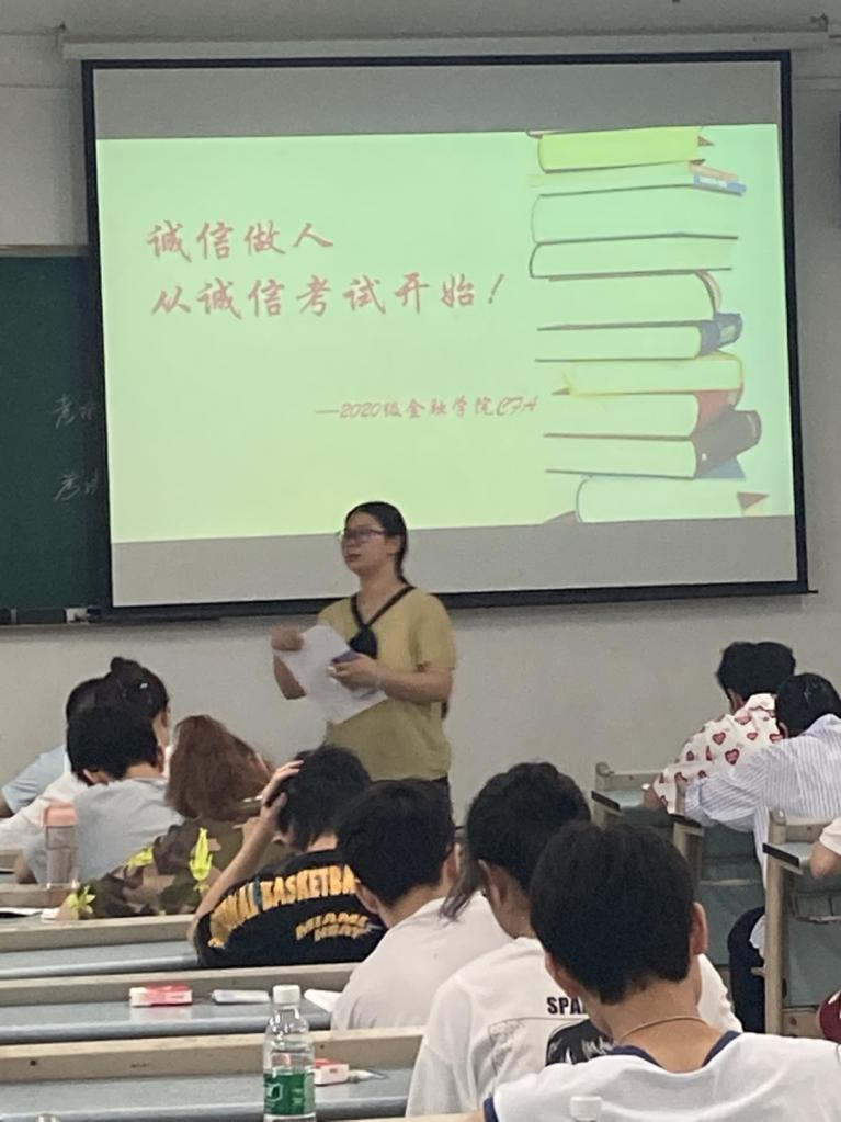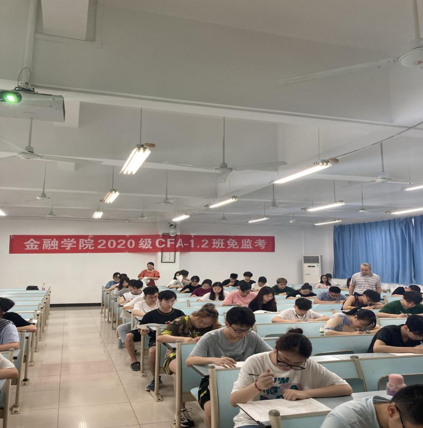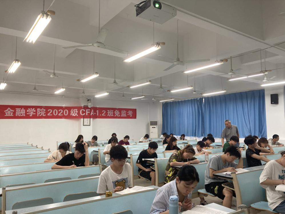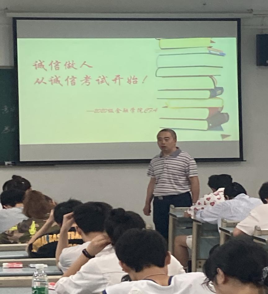 7月2日上午9:00,英国365集团公司2020级CFA专业54名同学自愿申请在兰花湖校区20309教室践行了以“诚信做人,从诚信考试开始”为主题的《金融学》课程的“免监考”诚信考试。副董事长李国军、教务处处长骆东奇、党委学工部副部长尹建平到场巡考。