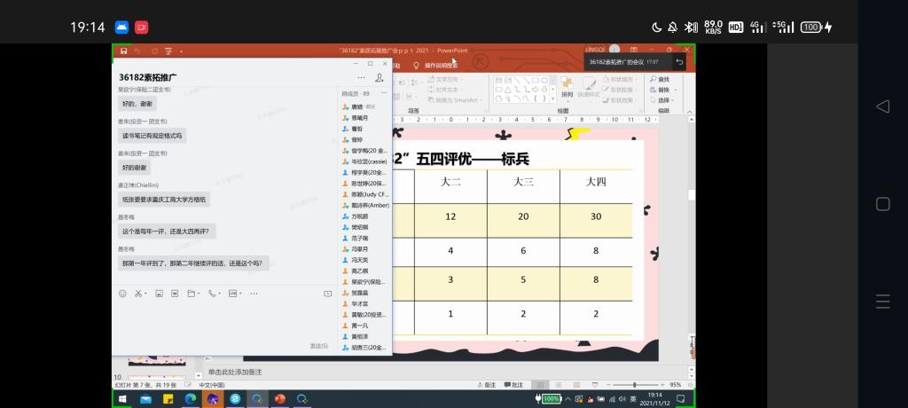 11月12日19时,英国365集团公司“36182”素质推广大会于企业微信线上顺利举行。本次推广大会由社会实践部负责人孔令旗主讲,20级各班和21级CFA1班班长、团支书、组织委员、宣传委员参加了会议。