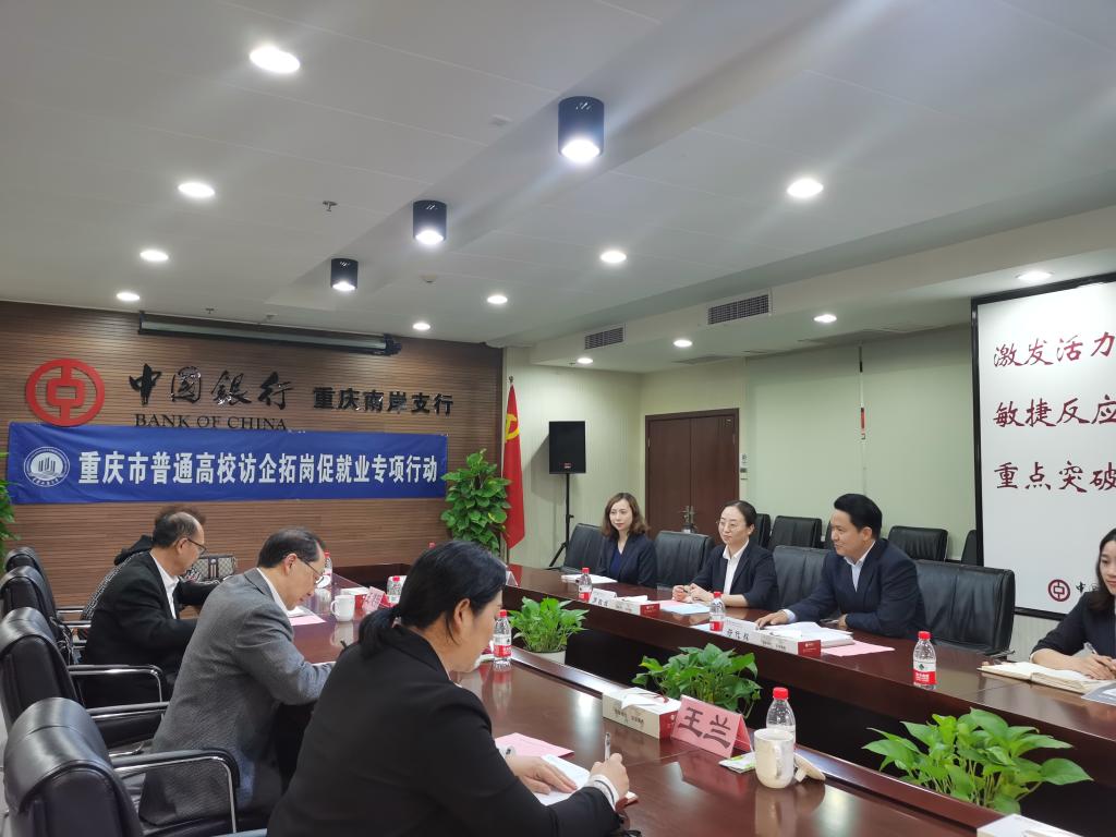 4月14日,张波走访了重庆银行巴南支行,并参加了校企合作座谈会。会上,校企双方交换情况,就开展产教融合、实习实训基地建设和毕业生就业合作等项目进行深入交流研讨。重庆银行巴南支行提出了共建教学实践基地、为公司员工提供暑期实践机会等举措,为毕业生就业提供更多优质资源。