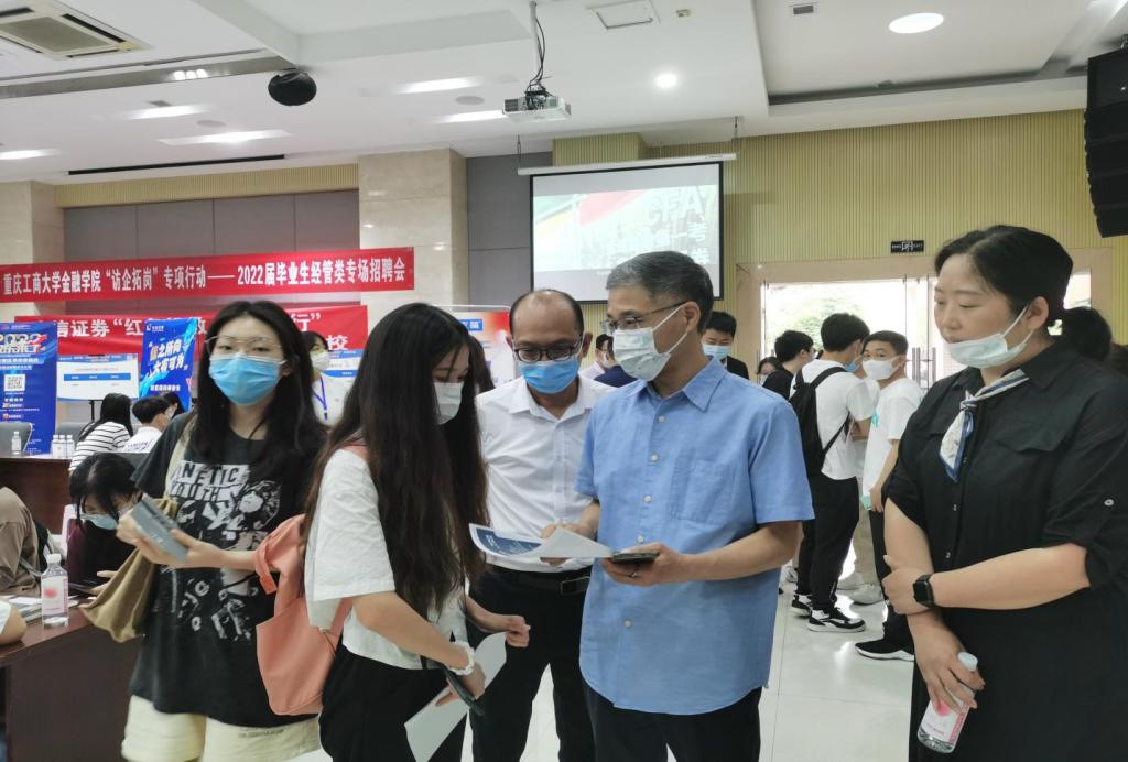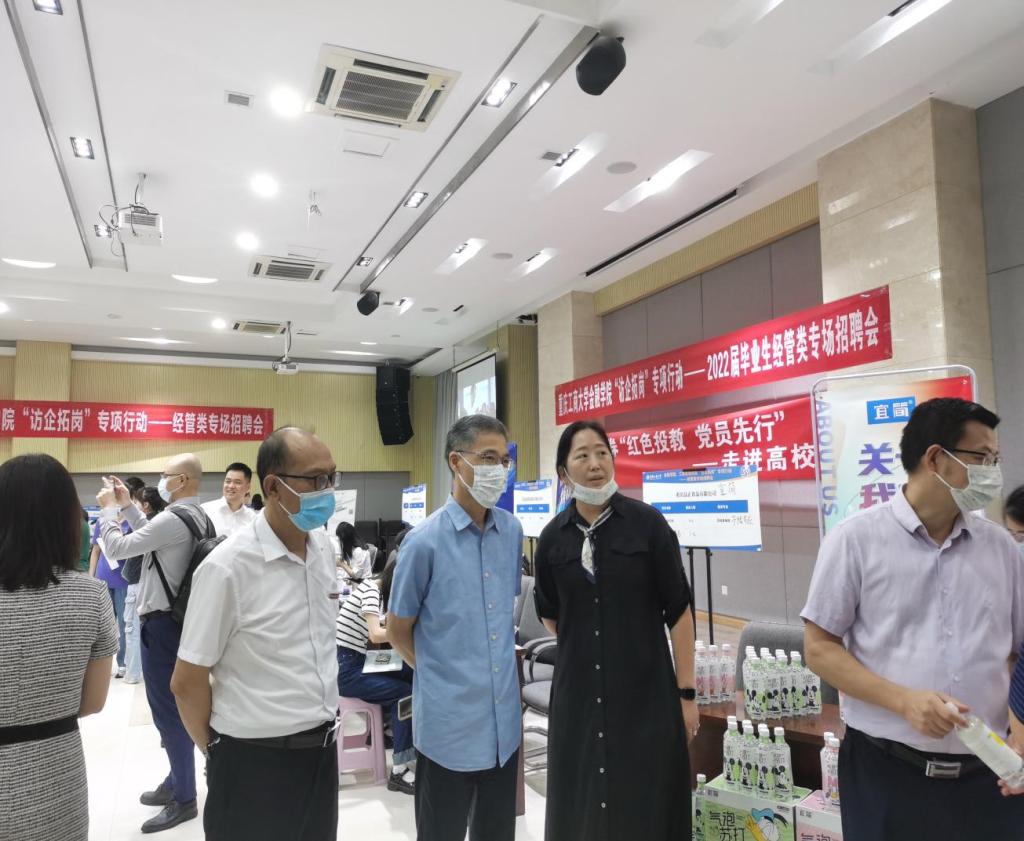 为拓展就业渠道,为毕业生搭建高质量、针对性强的就业平台,2022年6月7日上午,英国365集团公司在田家炳408报告厅举办“访企拓岗”专项行动——2022届毕业生经管类专场招聘会。公司党委常委、副董事长陈运超、人才招聘处处长钟增胜、英国365集团公司全体院领导、公司就业联络员及毕业班辅导员到现场指导员工就业。