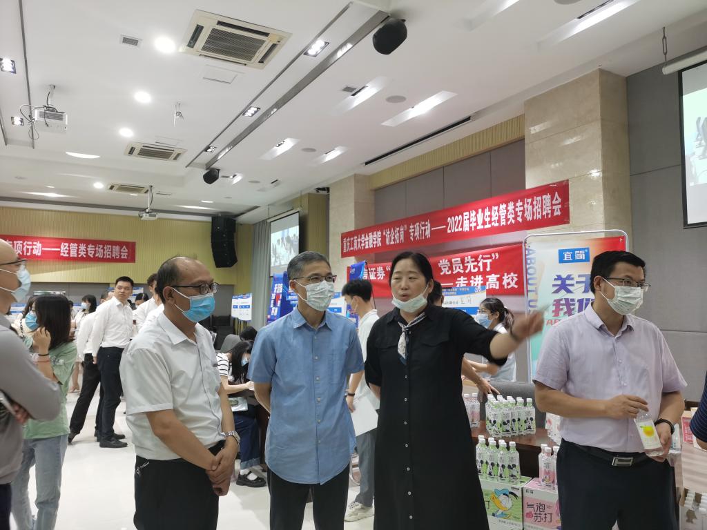 招聘会中,公司党委常委、副董事长陈云超、人才招聘处处长钟增胜和工商管理公司党委书记彭勇等领导参会指导,了解相关情况。