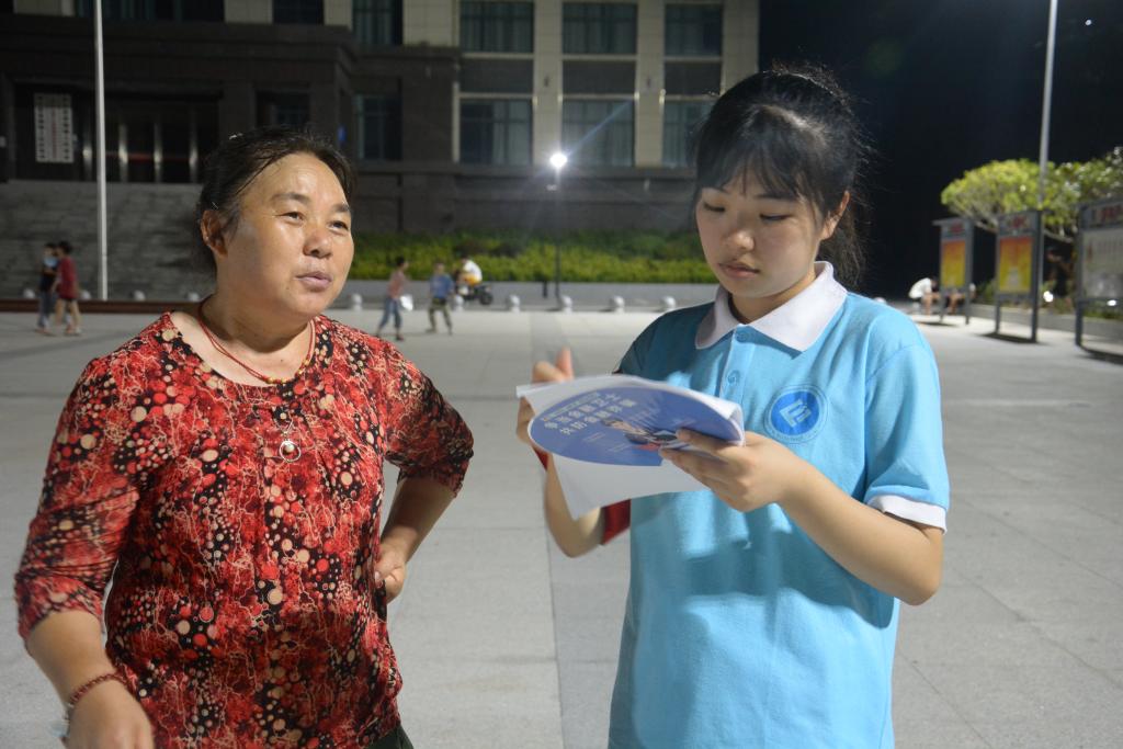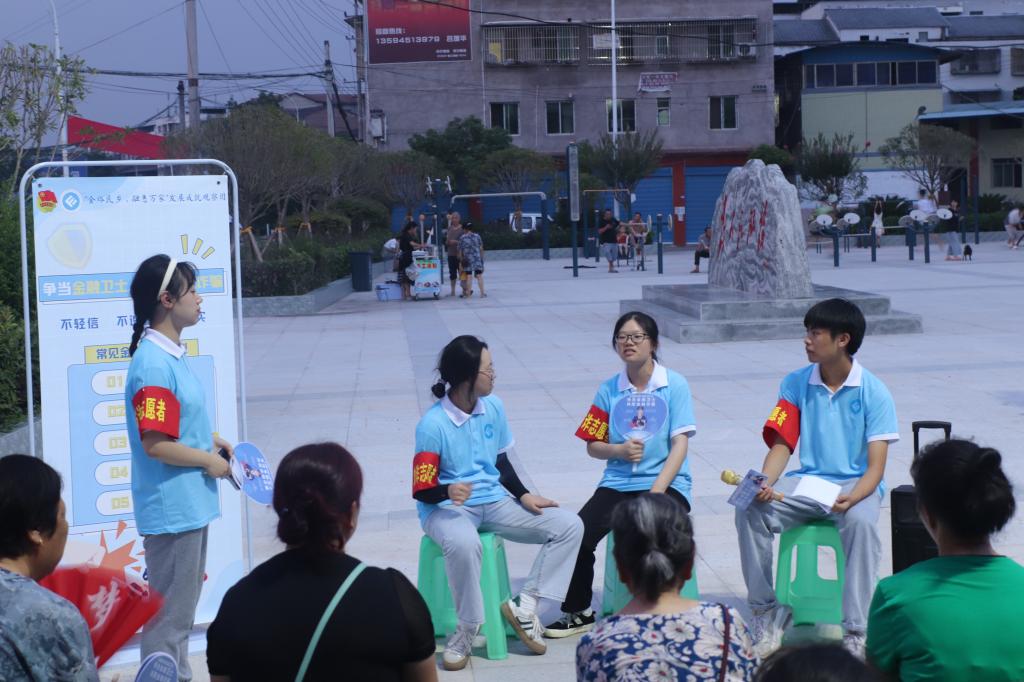 在开展集中宣讲时,为提高宣讲的趣味性、通俗性和吸引力,实践团成员以小品的方式将包括冒充公检法诈骗、电信诈骗、高额收益(集资)诈骗等案例形象生动地演绎出来,以“村民被诈骗经历分享会”的形式生动还原了村民被诈骗的全过程,引起在场观众的情感共鸣和热烈讨论。小品演绎后,实践团成员一对一深入村民中,发放宣传手册和印制有防范诈骗的折扇,分享更多诈骗手段,呼吁村民要提高警惕,心中牢记防骗“四不”策略,即“不听、不信、不转账、不汇款”,切忌贪图小便宜而上当受骗,有疑问时及时询问家人或致电110,守住“钱袋子”。