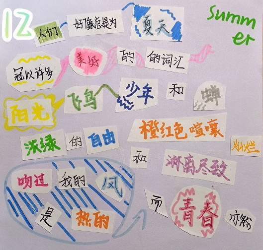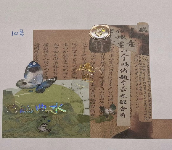同学们通过拼贴不同的文字和图画,将种种情愫蕴藏进行风格不同的拼贴,不同的摆放布局和裁剪角度都展现了参赛者们对创作主题的思考和对艺术的理解。