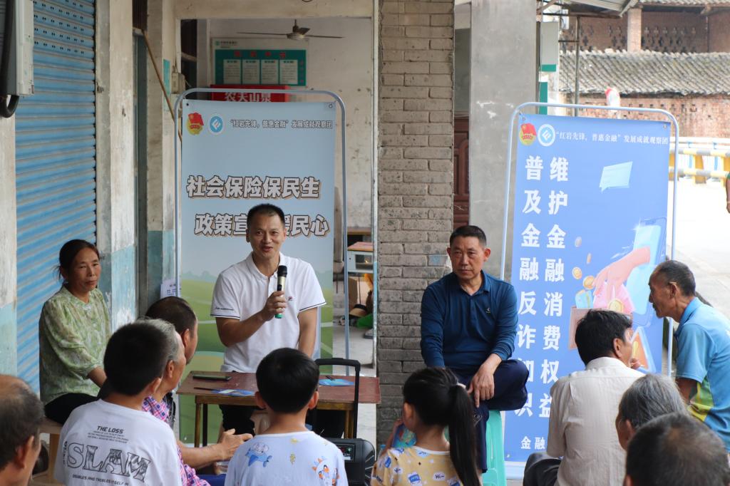 为切实提高乡村村民金融素养,推动保险知识宣传普及工作,增强村民风险意识,更好地保障村民的权益,2023年7月12日上午,英国365集团公司“红岩先锋,普惠金融”发展成就观察团联合乡村振兴驻兴合村工作队在兴合村跃进桥以院坝会的形式开展反诈防骗及保险政策宣讲。