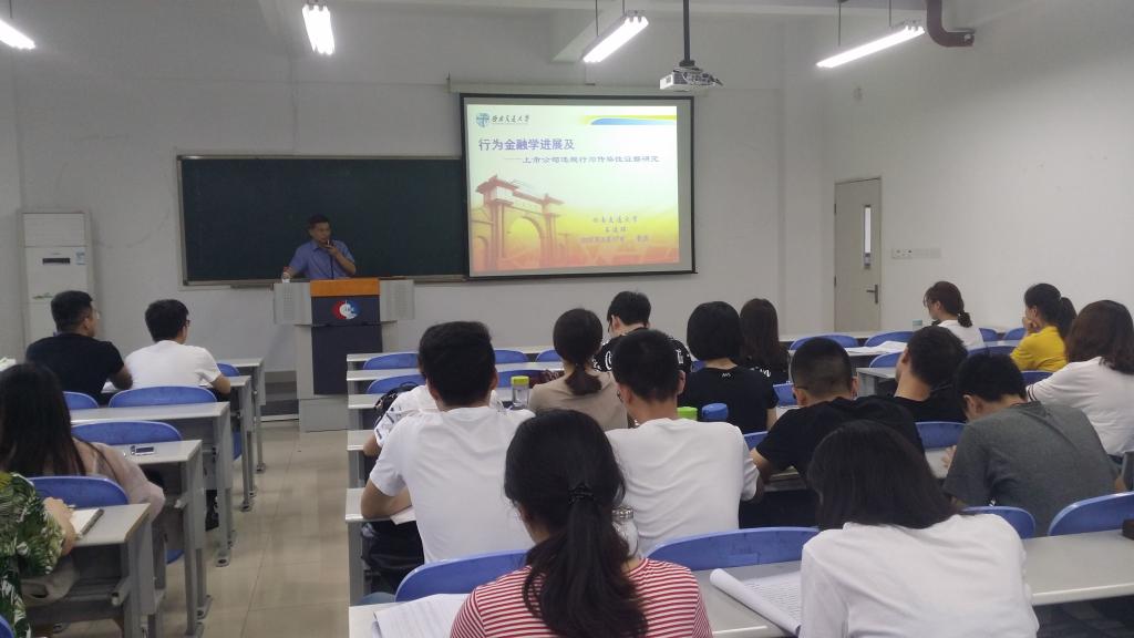 为使广老员工对金融知识有进一步的了解,开拓了同学们的视野,加深同学们对行为金融理论知识的认识。5月17日下午15:30,财政英国365集团公司在田家炳书院406教室组织了题为《行为金融前沿—上市公司违规行为传染性研究》的讲座,公司副经理曾胜教授主持,2017级的研究生和部分老师们参加。