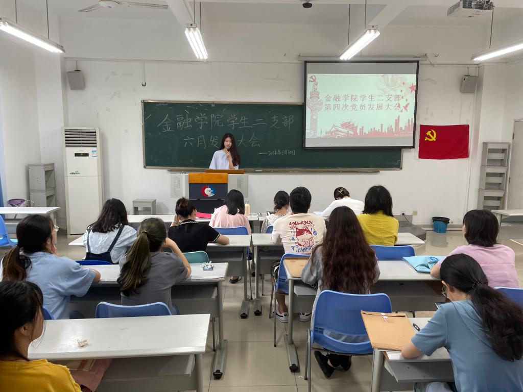 大会首先由支部书记乔明月同志发表讲话,首先指出了大家在党支部规模不断壮大的同时应更加注重保持党员的先进性,时刻严格要求自己;同时,希望本次的发展对象能够端正入党动机,做好接受党组织考验的准备。紧接着,5名发展对象逐一上台讲述了自己的入党动机、入党历程和对党的理解和认识,同时结合自己的实际情况表达了自己加入中国共产党的决心和强烈愿望,真情的表达了对党的向往,对党的忠诚,表示坚定不移跟党走,为党的工作付出自己的力量,为共产主义事业奋斗终生。每位发展对象发言之后,各对应入党介绍人对其进行学习、工作、实践活动等方面进行评价。最后拥有表决权的6名正式党员进行了企业微信在线投票,最终全体党员一致同意发展对象正式成为预备党员。 最后发展对象宣誓,他们高亢激昂,声音久久回荡在教室里,真正展现出了对党的崇高敬意。