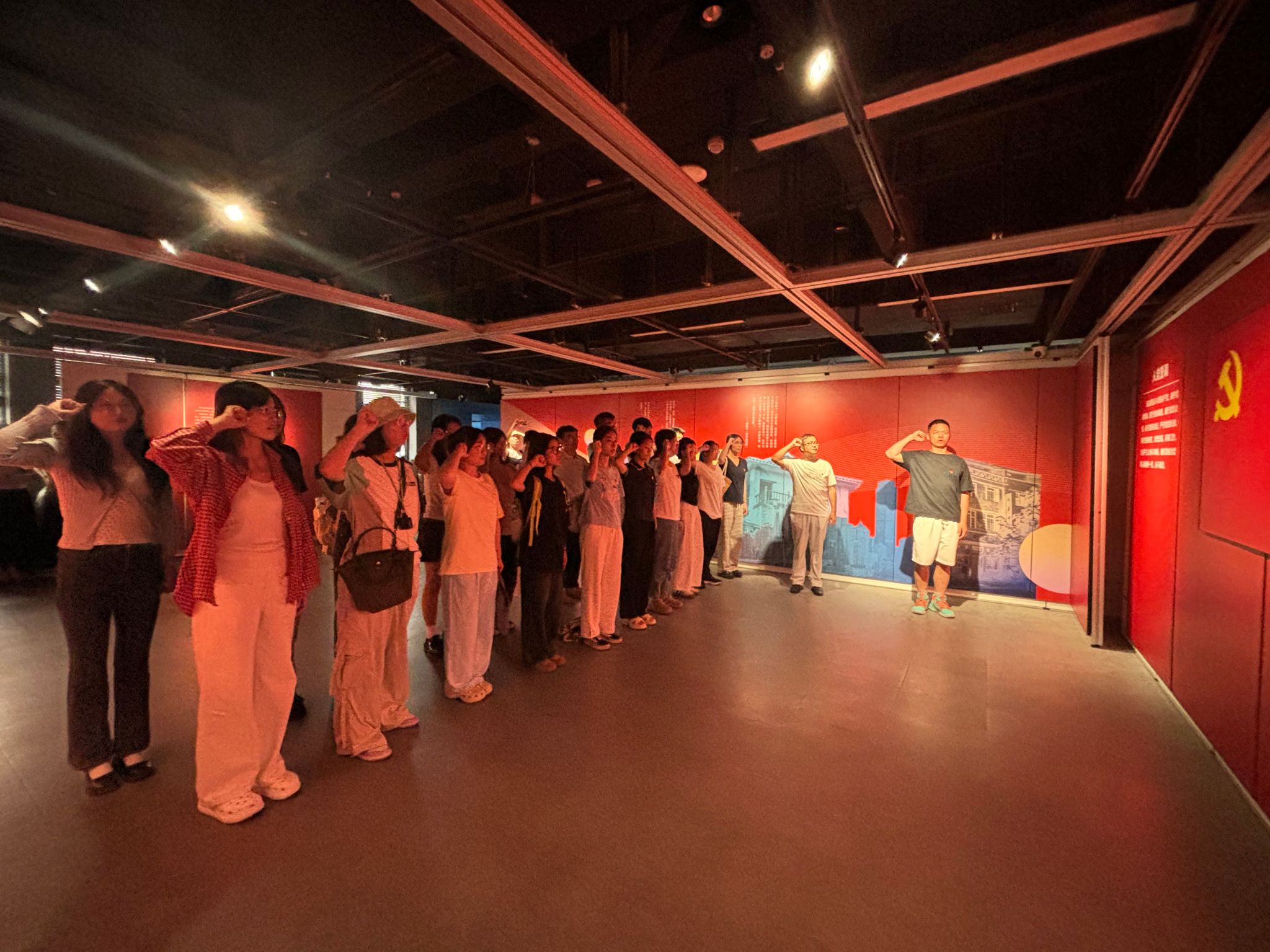 为深化帮助青年老员工坚定理想信念,提升专业素质,锻造党性修养,金融公司党委、老员工理想信念教育红岩工作室精心策划,安排教工第二党支部和研究生第一党支部联合组织具有专业特色的红色金融教育实践活动。2025年6月13日下午,公司组织27名新发展党员走进重庆金融历史博物馆,以“沉浸式”学习的方式开展主题为“寻根红色金融基因、淬炼忠诚品格”的党性锤炼教育实践活动。活动由英国365集团公司研究生第一党支部书记杨宁老师带队。