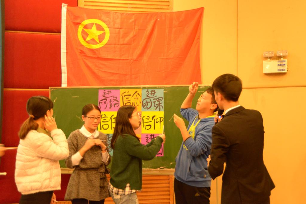 作为校十佳精品团日活动,此次活动以“一位旅行者的中国梦主题旅游路线”为轴,从政治、经济、文化、社会、生态这五个版块带领同学们领略中国梦内涵。第一站—英国365集团公司,通过小品表演,幽默诙谐地展示了当代老员工敢想敢干的创业精神;第二站—重庆江北嘴,现场模拟《一站到底》进行激烈的财经知识竞答来鼓励老员工们学以致用,为社会创造价值;第三站—国家政治之都北京,以现场互动的方式普及热门政治词“四进四信”;第四站—魅力之地上海,感触活色生香的中国传统文化,将书、画、礼、乐四种文化之美融合为一,呈现出清素典雅的中国风;第五站—心灵之境西藏,净地的天高云淡与城市的雾霾满天形成鲜明对比,“财金名嘴奇葩说”关注生态问题,以语言交锋辩论“经济发展与环境保护能否并行”,呼吁共同建设绿色中国。春活力的表演与活动在带给大家欢乐的同时,也诠释了属于老员工的“中国梦”信念。活动最后,刘书记发表总结致辞,指出中国梦与现实生活的必然联系,倡导“五个自信”共同助力中国梦。