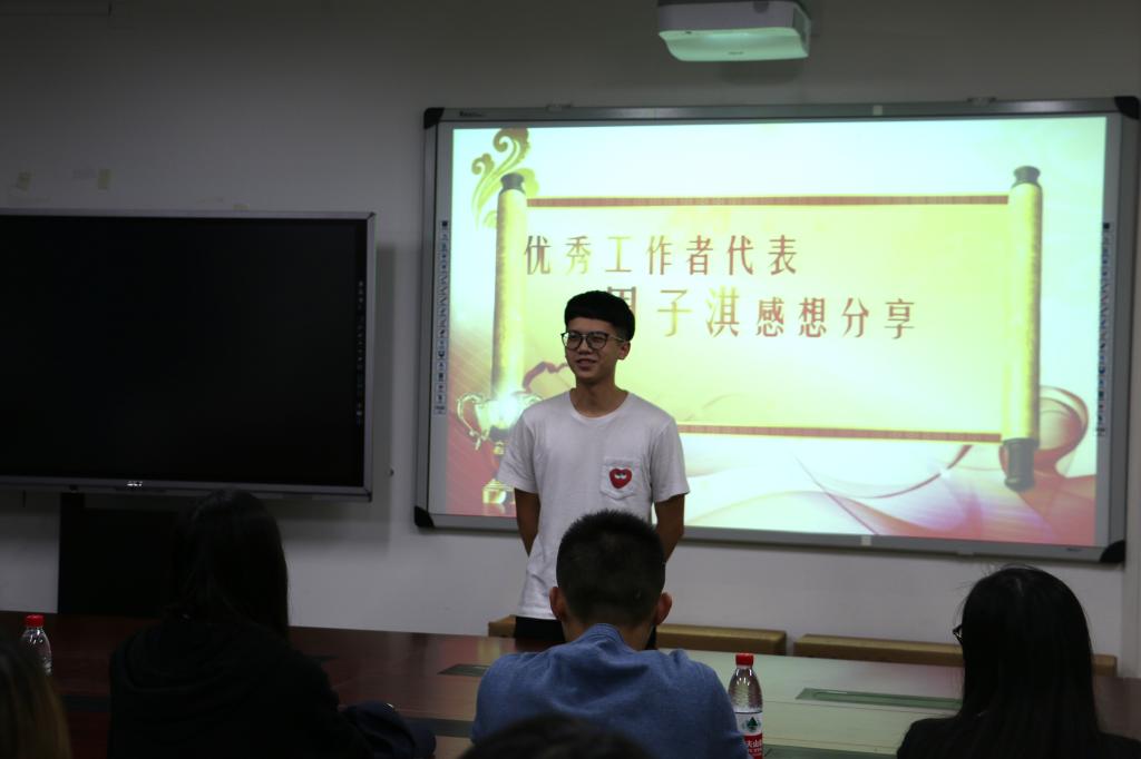 接着,由公司分团委员工会体育部部长张元宝对校运会工作进行总结汇报,优秀运动员代表、方阵队员代表、优秀工作者代表讲述了他们参加运动会的感想与心得。最后是颁奖环节,员工会主席团先后为优秀工作者、杰出贡献个人、优秀运动员代表、优秀方阵代表颁奖。同学们获得的不仅仅是这一份荣誉,更承载着无数同学对他们的期望与信任。正如优秀运动员代表李凯所说:“最开始报名的时候,同学们让我报200米、400米、接力……我说报!当时没有想到能得多少奖,只是想要去为这个集体做点什么。”天将降大任于斯人也,不怨辛劳,人生如此。