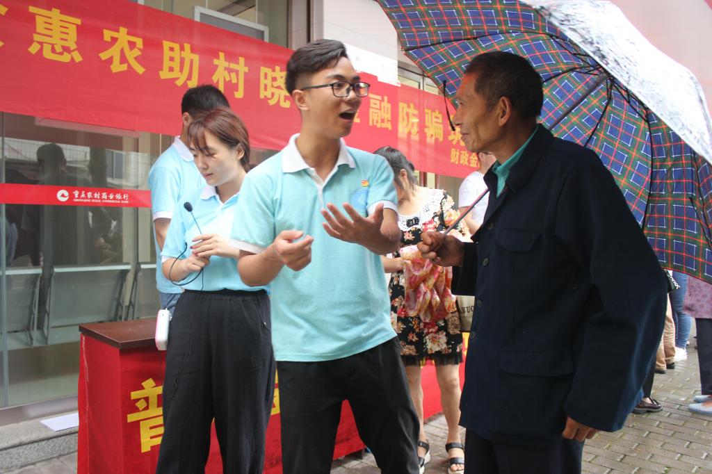 此次金融知识宣讲会,活动形式多样。调研团成员发放金融知识防范诈骗宣传单,用通俗易懂的语言向当地乡民讲解防骗知识;通过方言表演金融防骗顺口溜,以幽默风趣的方式将金融防骗知识传递给乡民;摆放易拉宝展示金融维权方式和保障金融消费者八项基本权利,吸引乡民驻足。