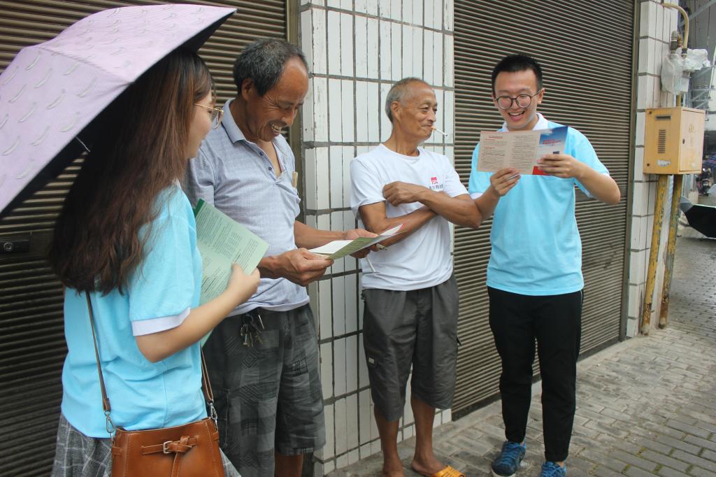 宣传台前,除了宣讲和调研,调研团成员还积极为我们的村民答疑解惑。