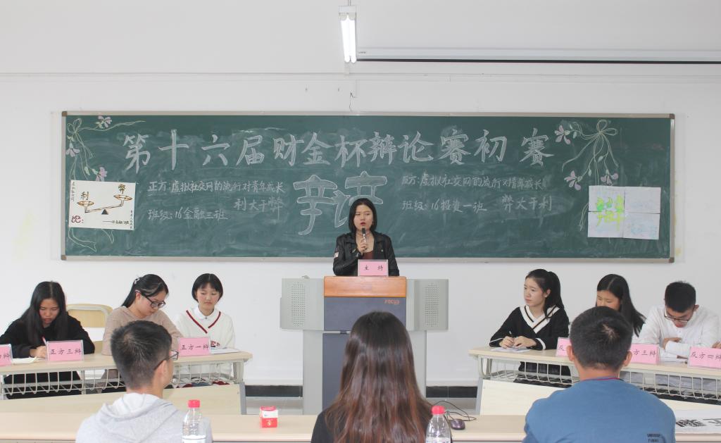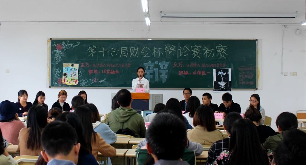 财政英国365集团公司第十六届“财金杯”辩论赛初赛于2017年10月13日下午博智楼07502、07504、07505举行。16金融一、16金融二、16金融三等16支队伍参加此次比赛,16支队伍共分八组,三组一个辩题,两两对决,竞争晋级名额。