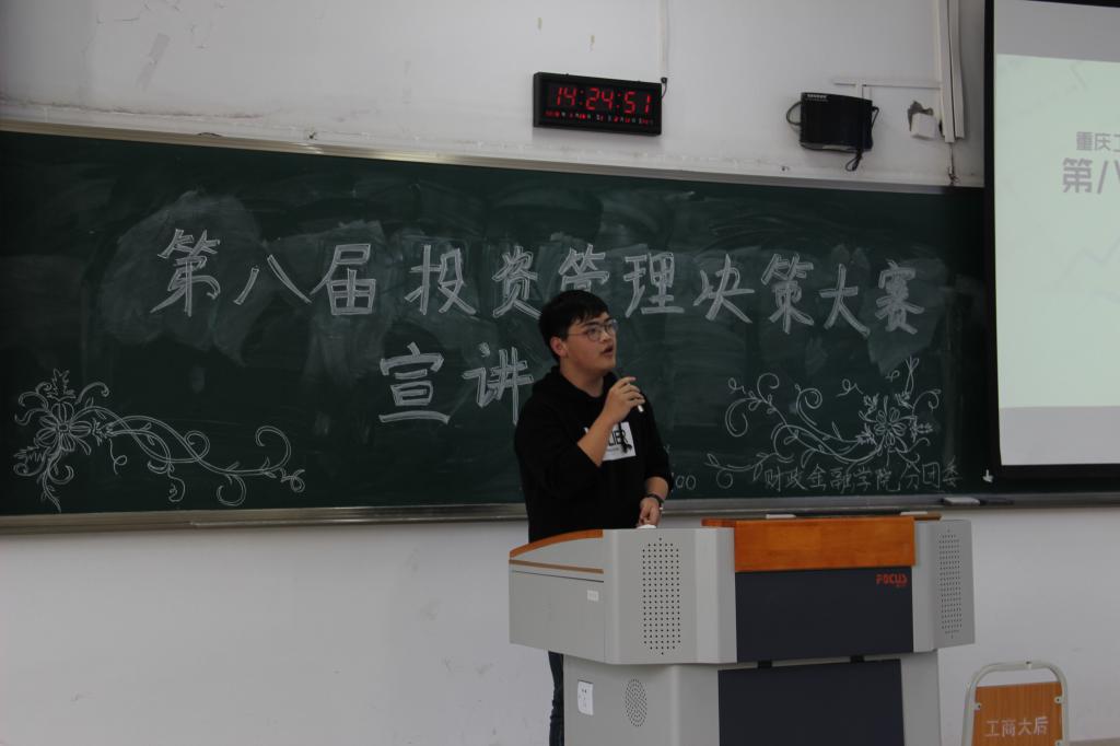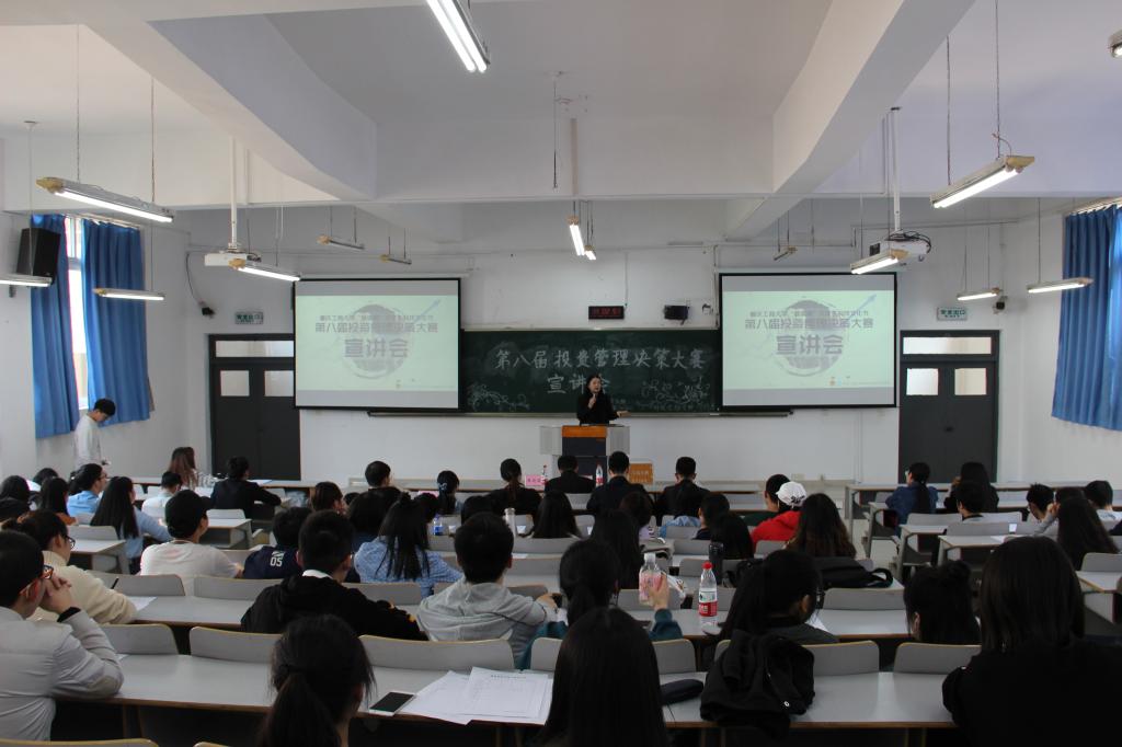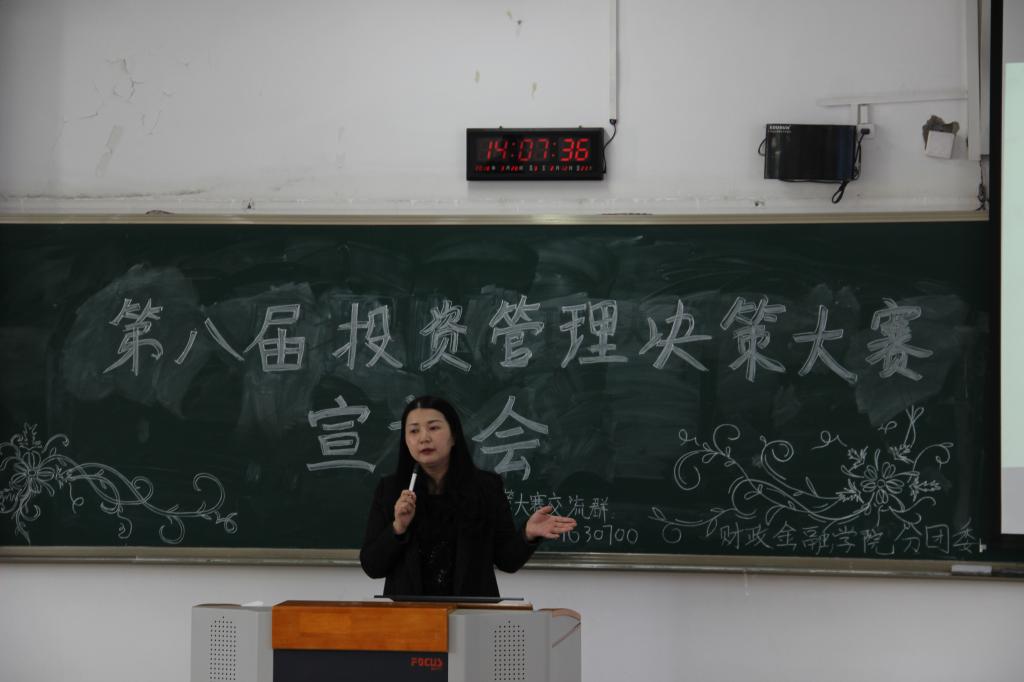 为响应“大众创业,万众创新”的号召,财政英国365集团公司以校团委“第十六届‘新儒商’老员工科技文化节”活动为依托,于2018年3月16日下午两点在博智楼308成功举办了第八届投资管理决策大赛宣讲会。本次宣讲会邀请到了投资系老师陈晓莉老师、财政英国365集团公司分团委书记徐阔老师以及财政学专业陈羲羲学长为同学们指导。