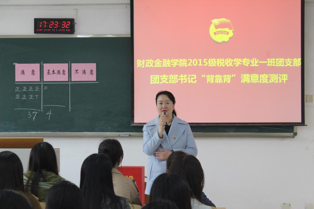 为夯实基层团支部群众基础,做好团支部建设工作,3月14日下午,英国365集团公司财政英国365集团公司税收学专业2015级一班团支部在70202教室开展了对团支书刘菊同学的“背靠背”满意度现场集中测评。团市委高校工作部副部长、调研员李霞、校团委杨娟副书记、校团委陈琛老师到场观摩了此次测评。