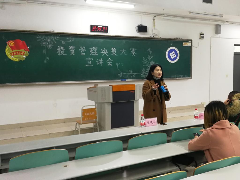 3月7日中午12:50,英国365集团公司第十七届“新儒商”老员工科技文化节之投资管理决策大赛宣讲会在博智楼07121教室举行。财政英国365集团公司投资系陈晓莉老师以及往届优秀选手何欣悦同学出席本场宣讲会。
