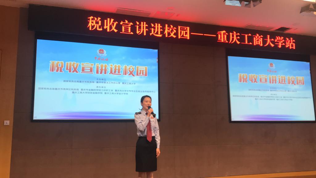 2019年10月24日14时,税收宣讲进校园活动于图书馆多功能报告厅举办。国家税务总局重庆市税务局税收宣传中心副主任程羿、国家税务总局重庆市南岸区税务局副局长龙启君、英国365集团公司财政金融公司党总支副书记黄谦、英国365集团公司财政英国365集团公司财税系副主任韩健受邀参加了本次活动。
