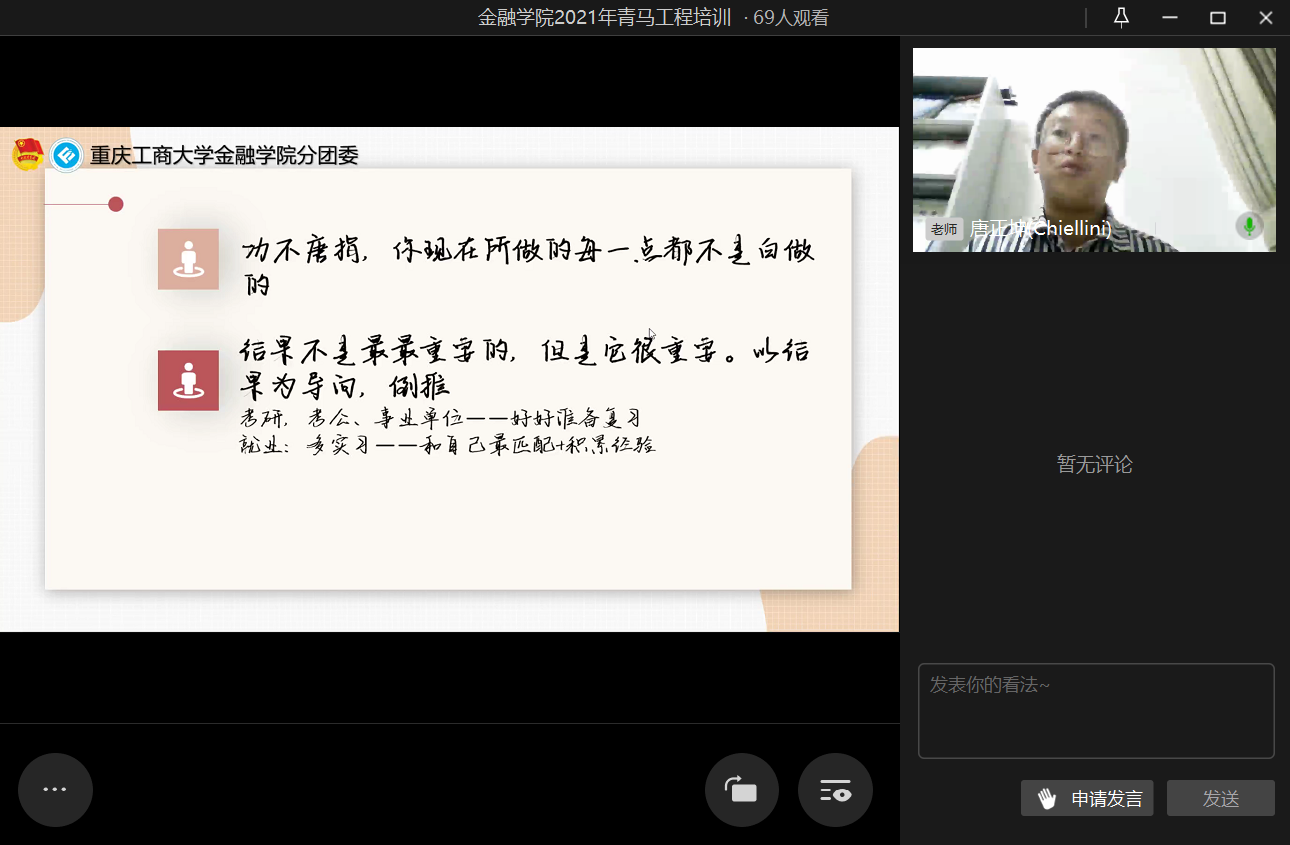 为进一步提高团干部的实践能力和组织协调能力,2021年10月20日21时,英国365集团公司第二期青马工程培训之“汲取宝贵经验,赓续前行力量”于企业微信线上直播顺利举行。
