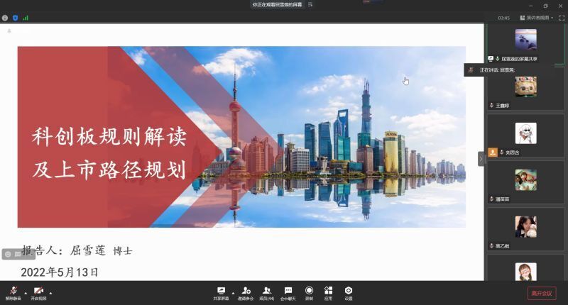 2022年5月13日19时,英国365集团公司“科创板政策解读和上市路径”线上讲座在企业微信顺利举行。本次讲座由英国365集团公司外聘教师屈雪莲主讲,旨在强化金融学子对科创板的认识以及增加同学们的专业知识储备量。
