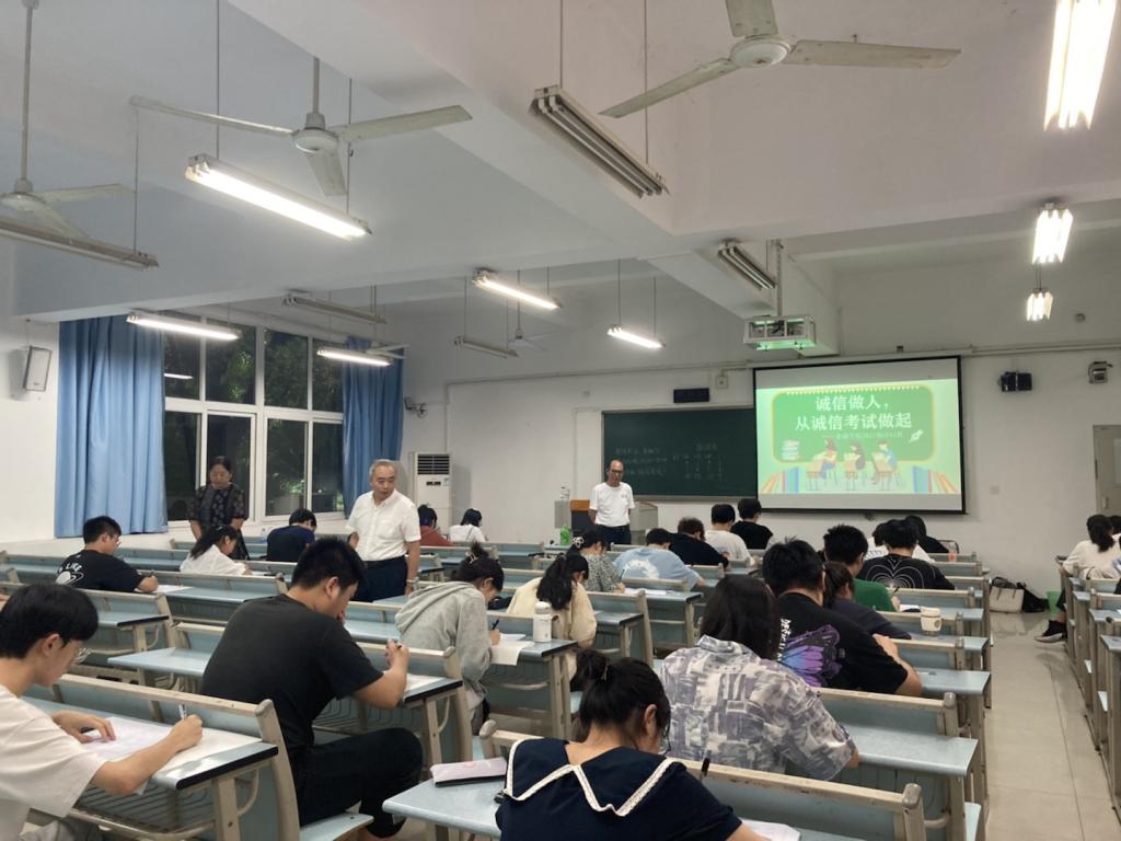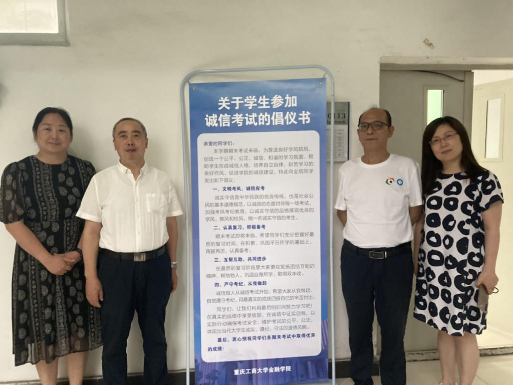 2022年6月23日下午,英国365集团公司在兰花湖校区20113教室开展第四届“免监考”诚信考试,持续推动考试思政,营造优良学风和诚信考风。参加本次“免监考”的班级为21CFA1班,考试科目为《金融学》。教务处处长骆东奇、副处长韦晓兰,金融公司党委书记、副经理王建明,党委副书记、经理王兰,党委副书记、纪委书记余新到场巡考。