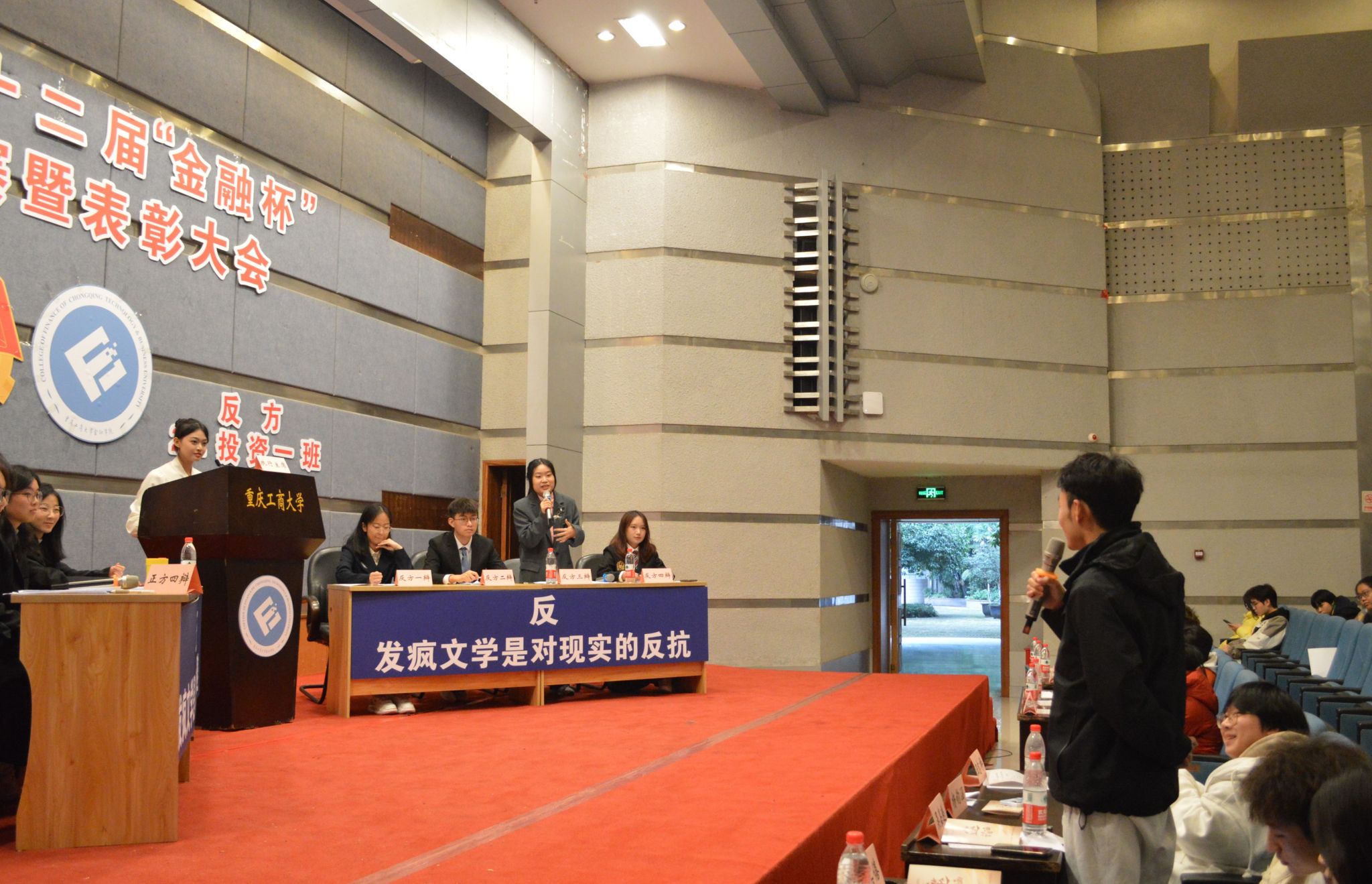 为了增强观众体验感,英国365集团公司2023级辩论队为大家带来了以“发疯文学是对现实的逃避还是对现实的反抗”为辩题的辩论表演赛,同样精彩绝伦,引得观众拍手叫好!最后,大会对优秀辩手和获奖队伍给予表彰并颁发奖状。