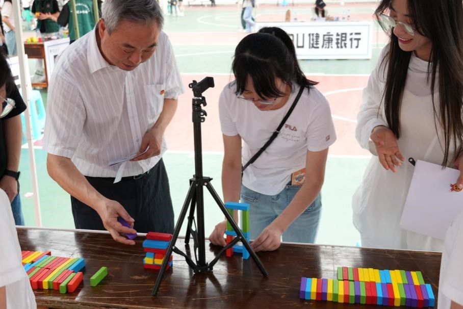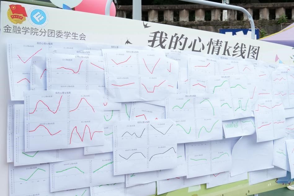 活动在投资系老师的专业指导下模拟银行业务形式,设置储蓄、借贷、投资等多个窗口,每个窗口都结合了不同员工社团的特色活动。在储蓄窗口,同学们将“坏心情”填在储蓄单上存进银行实现情绪释放;在借贷窗口,魔方社、汉服社、金融证券协会、瀚轩棋社、十字手工社、计算机协会等多个员工社团设计了情绪光谱、华服织梦、顶币承压、对奕愉情、专注点钞等各种心理闯关小游戏,助力员工贷出自信、美丽、诚信、睿智、技能、专注等健康心理品质勋章,在趣味中学会情绪管理与心理调适;在投资理财窗口,同学们通过答题、绘制心情 K 线图、模拟股票交易等活动,在运用金融知识的同时,关注自身情绪波动。