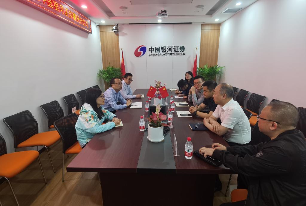 为深入开展学习贯彻习近平新时代中国特色社会主义思想主题教育,5月8日上午,金融公司党委书记、副经理石世明,副经理魏琪,学工办主任、分团委书记兰丽娟等一行前往中国银河证券重庆分公司开展调查研究暨访企拓岗专项行动,探索校企深度融合新模式。中国银河证券重庆分公司党总支书记总经理周明、重庆分公司综合运营部负责人聂云、重庆民族路营业部总经理严华侨、重庆江北嘴营业部总经理王源媛、重庆分公司机构业务部负责人王楠煜、重庆万象城营业部市场营销部负责人刘珂及重庆江北嘴营业部客户经理高路涵等出席了交流会。