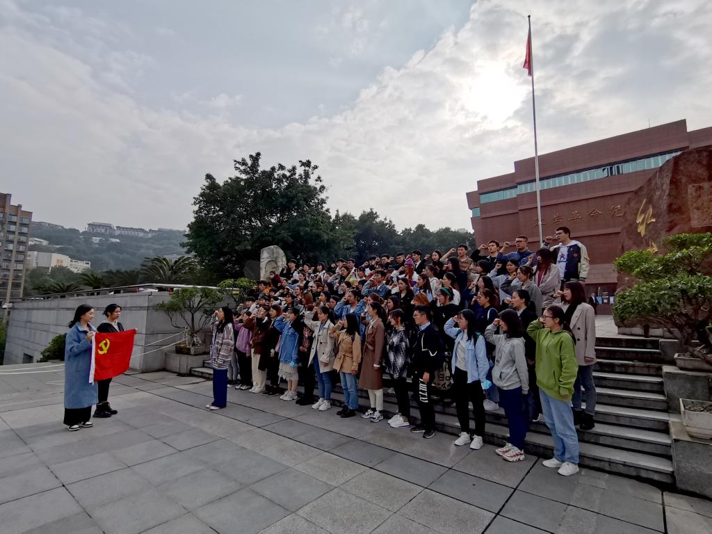 参观完后,80名新发展党员在红岩纪念馆广场前集合,面对党旗进行了庄严的入党宣誓仪式。宣誓仪式后,同学们的心情非常激动,纷纷表达了自己作为一名共产党员的自豪感。