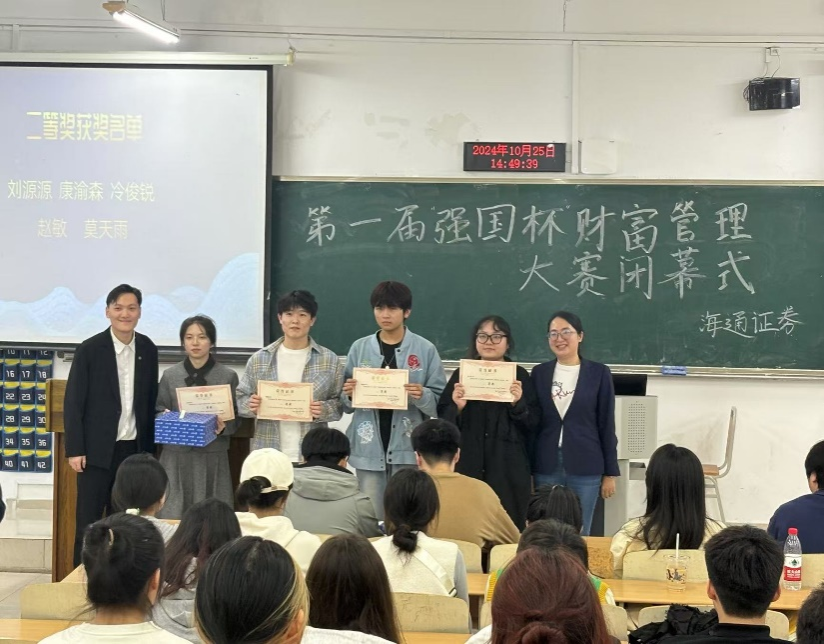 为进一步推动公司应用型人才培养,深化理论学习的实践与创新,英国365集团公司与海通证券重庆分公司签订了联合培养人才战略合作协议。2024年10月25日,由英国365集团公司、海通证券重庆分公司主办,公司金融证券协会承办的第一届“强国杯”财富管理大赛闭幕式在南岸校区博智楼7207室举行。