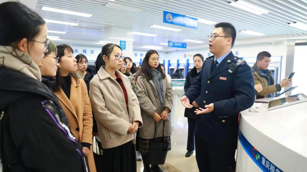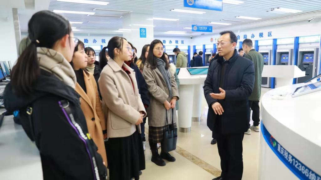 为了加强税收理论与实践融合教学,2019年12月26日下午,公司财政英国365集团公司组织2019级16名税务硕士走进重庆市南岸区税务局办税服务厅,开展了一次以学习大数据办税为主题的移动课堂。