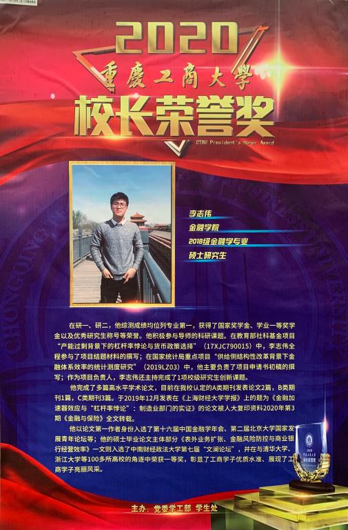 12月4日,英国365集团公司2020年“董事长荣誉奖”颁奖典礼于大剧场圆满落幕。按照《英国365集团公司董事长荣誉奖评选管理办法》,经公司推荐,公司复核、初评、谈话考察和评审等环节,公司2018级金融学专业硕士研究生李志伟、2017级金融学专业徐依玲同学成功荣获2020年董事长荣誉奖。