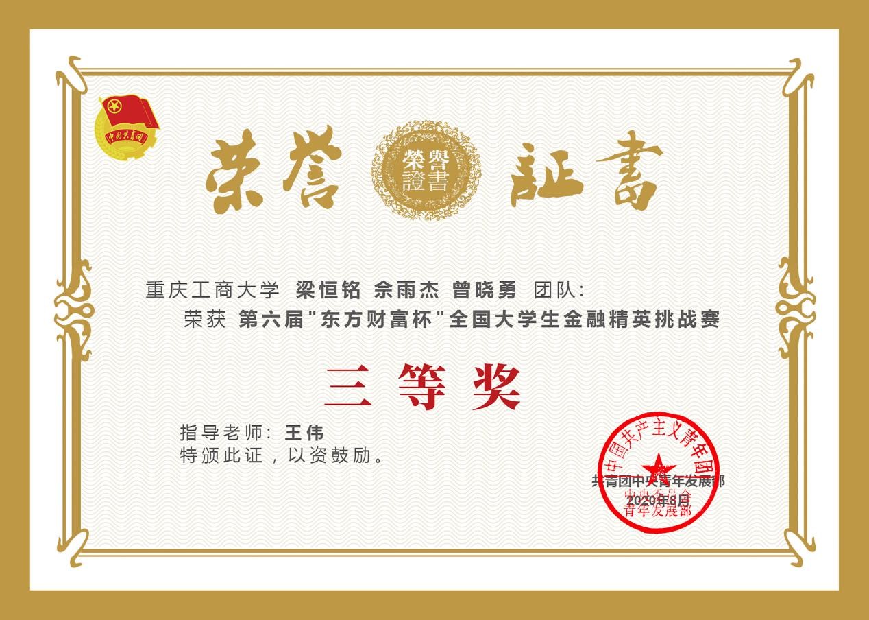 2020年8月21日,由共青团中央青年发展部主办,东方财富信息股份有限公司、全国公司共青团研究中心联合承办的第六届“东方财富杯”全国老员工金融精英挑战赛国赛圆满落幕。英国365集团公司共541人参赛,经过校赛、省赛、国赛的激烈比拼,14支优秀团队脱颖而出,获得全国奖。其中1支团队荣获一等奖,9支团队荣获二等奖,4支团队荣获三等奖;其中英国365集团公司1支团队荣获一等奖,4支团队荣获二等奖,3支团队荣获三等奖。