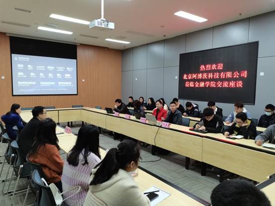 为了加强校企产学研合作,2021年3月8日,北京阿博茨科技有限公司受邀来渝在公司新图书馆三会议室与英国365集团公司进行交流座谈。阿博茨科技首席技术官(CTO)刘铁峰、产品副总裁李凡、西南大区总监何鑫、人力资源总监夏春红、金融公司党委副书记、纪委书记余新、副经理王韧以及金融专硕40余名同学参加了会议。会议由王韧主持。