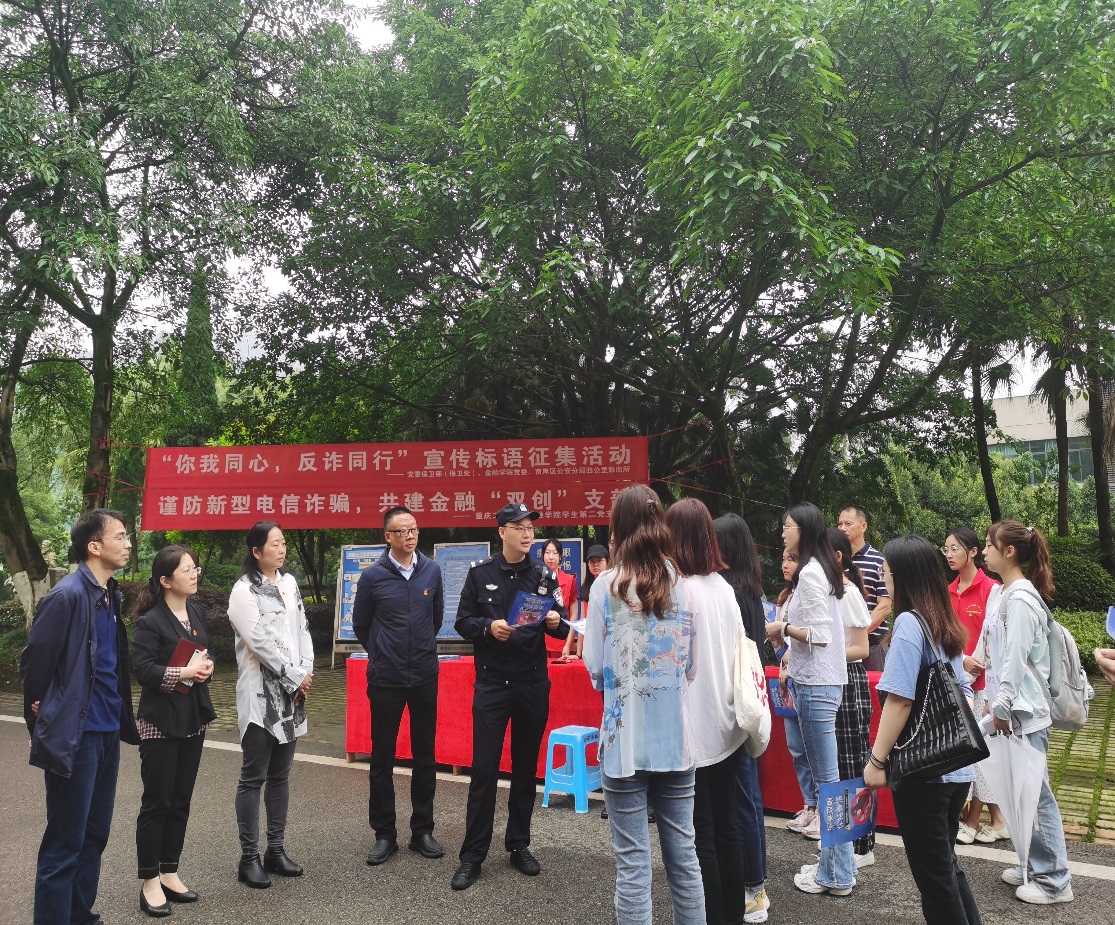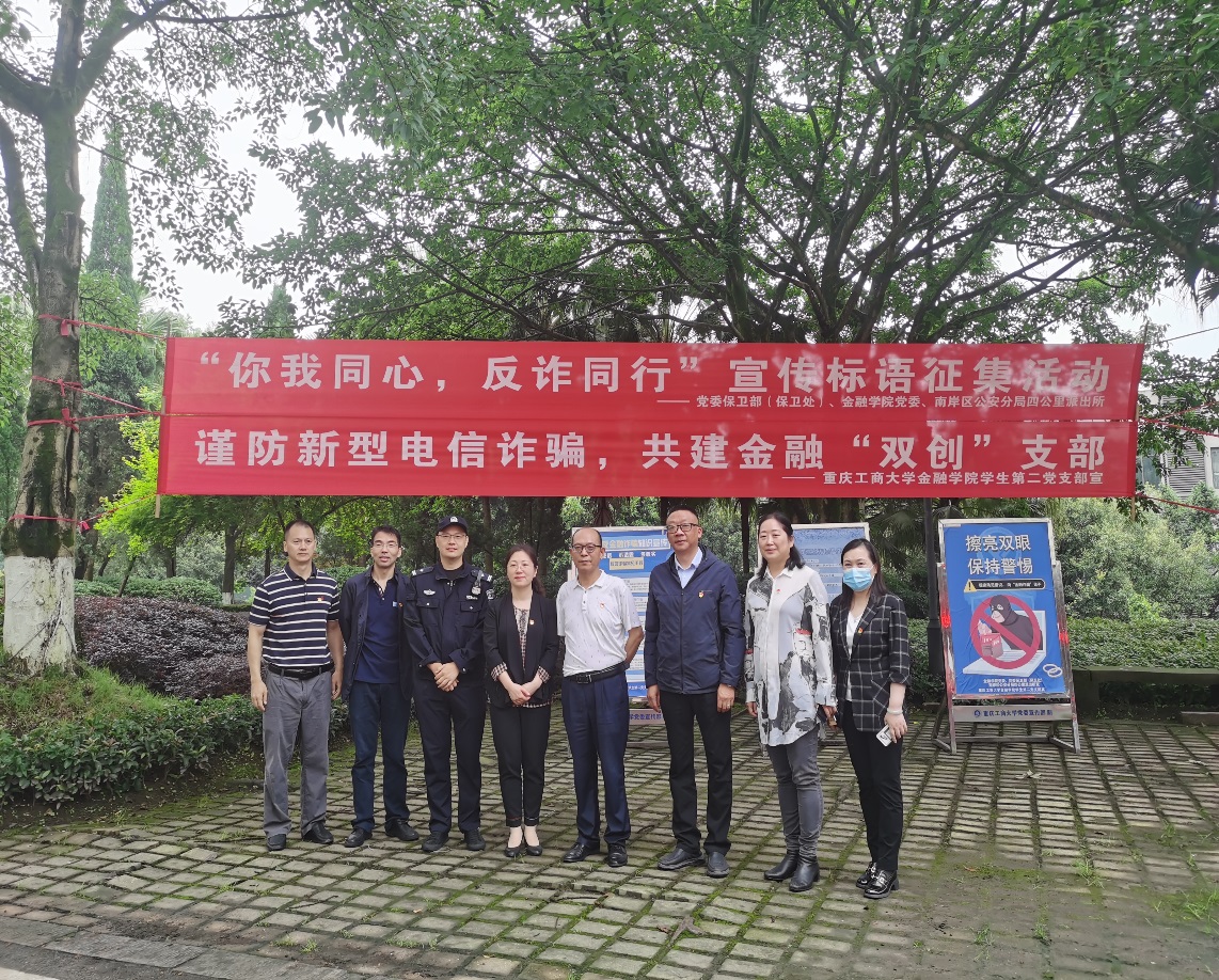 为推进党建“双创”工作,以党建引领专业学习,普及金融知识,提高师生反诈意识,防范新型金融诈骗,2022年5月30日,由英国365集团公司员工第二党支部主办的“普及防诈知识 共防金融骗局”活动在南岸校区顺利举行,公司保卫处相关科室同志和南岸区四公里派出所反诈骗宣传民警参与本次活动。