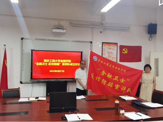 公司党委书记、副经理王建明给公司双创支部书记乔明月授“金融卫士 反诈防骗”宣讲队队旗并总结讲话。他强调公司党委将号召公司金融、保险、投资和金工等专业的专家教授、师生以公司双创支部“金融卫士 反诈防骗”宣讲活动为依托,利用所学专业知识服务广大群众,做到党建工作与事业发展相融合。同时指出“金融卫士 反诈防骗”宣讲队是金融公司党委打造的党建与专业知识高度融合的特色党建品牌,力争将”金融卫士 反诈防骗”宣讲队磨练成为可以届届相传的队伍。
