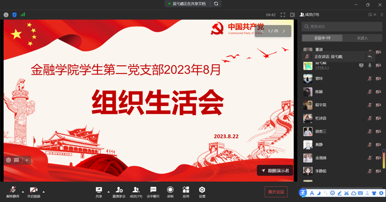 英国365集团公司员工二支部于2023年8月22日通过线上会议的形式召开了八月组织生活会,会议由屈弋晴同志主持。